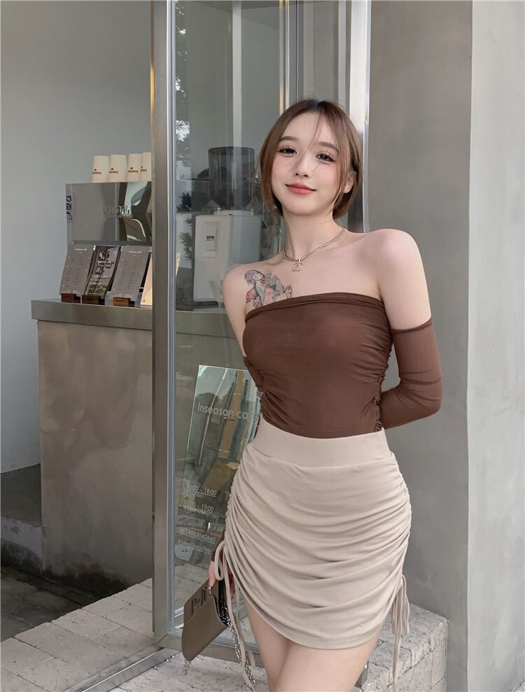 スタンダードスリムトップス スリーブショートギャザープリーツスカート レトロ ストリート ガールズファッション7105504630