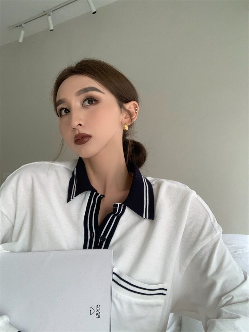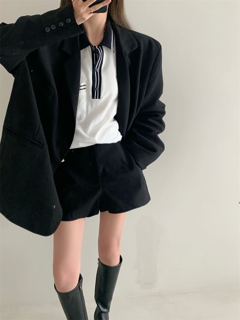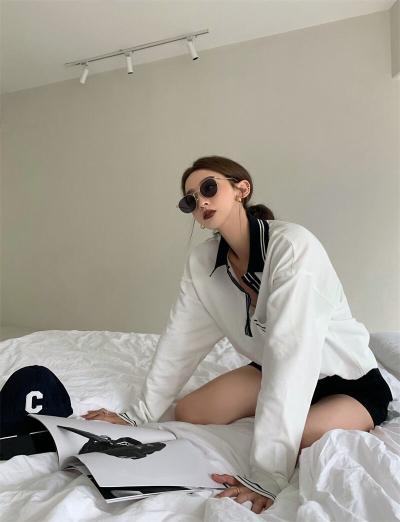 ホワイトオータムスタンダードカラートップス ルーズストライプジャケット ロング レトロ 秋物 ガールズファッション44605835682