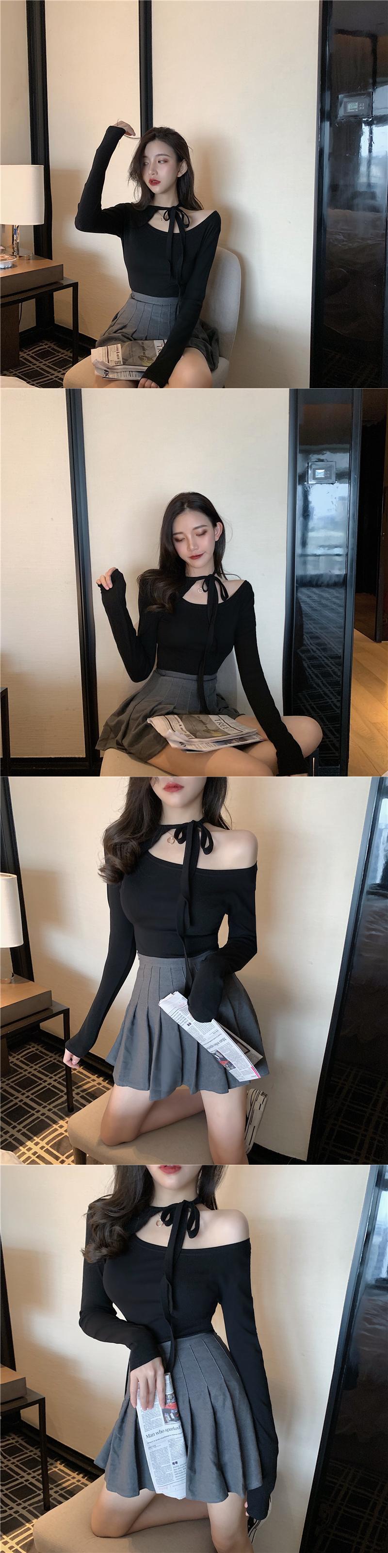 ブラックシャツ オータムスリムTシャツ トップス ロング 秋物 ガールズファッション93412573995