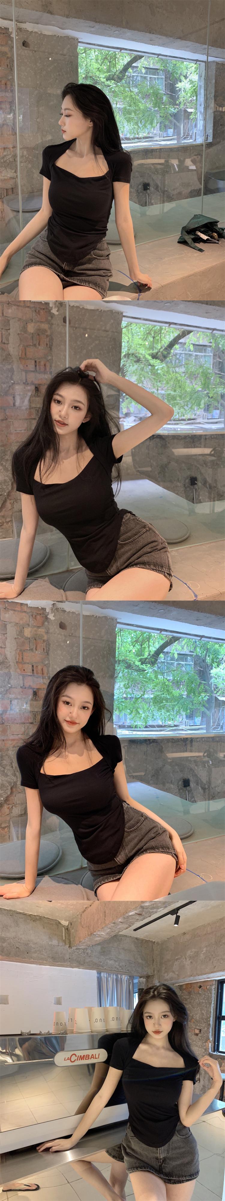 Tシャツ シャツ サマー薄手トップス 夏物 ピュア スクウェア ガールズファッション35858470933