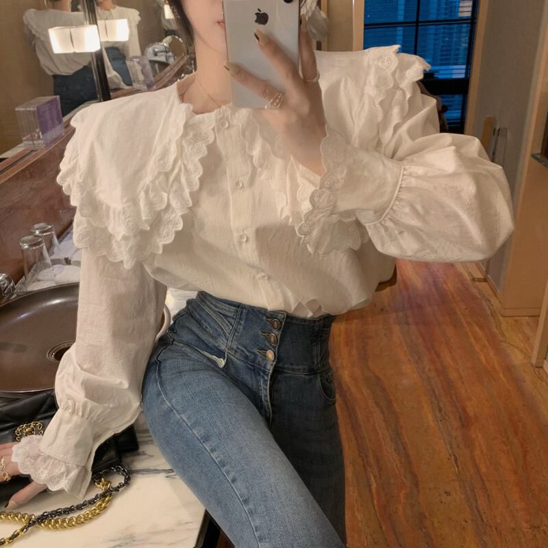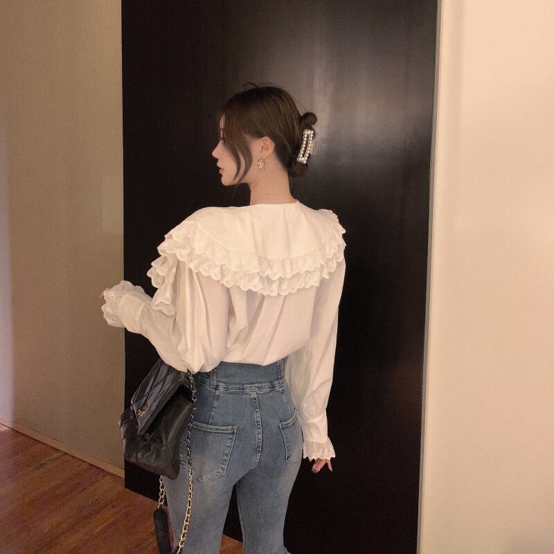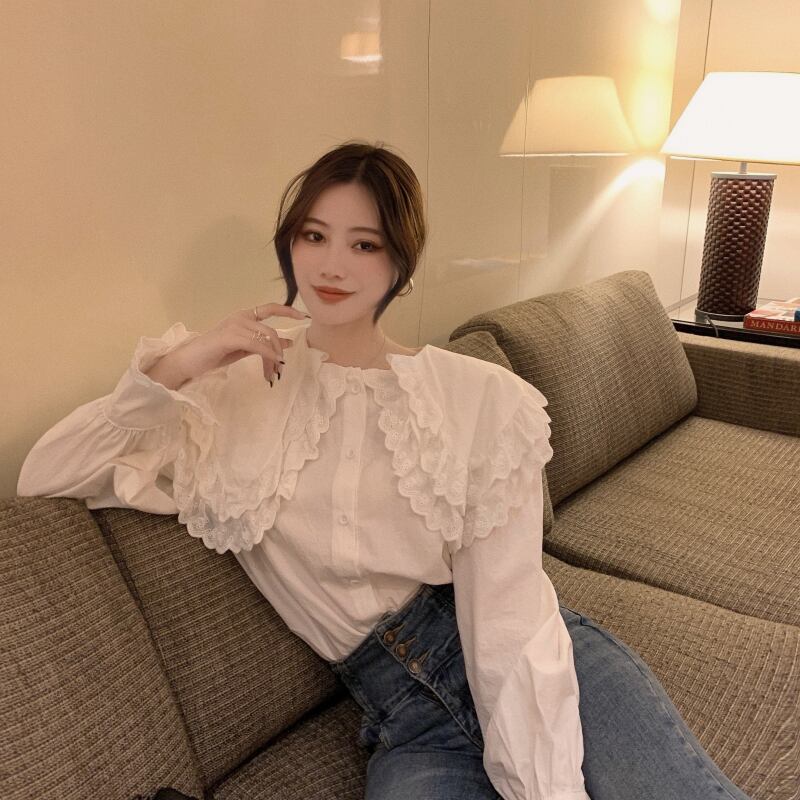 レースブラウス レディースオータムルーズホワイトシャツ 秋物 ガールズファッション33217944867