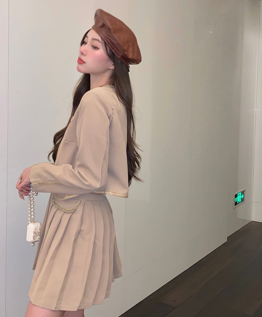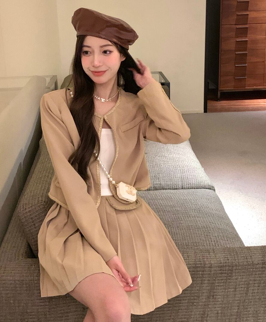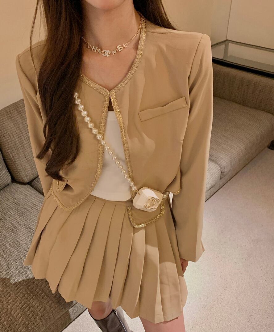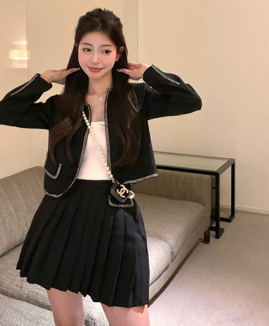 色:ブラックショートコート,黒スカート,カーキショートコート,カーキ色のスカート