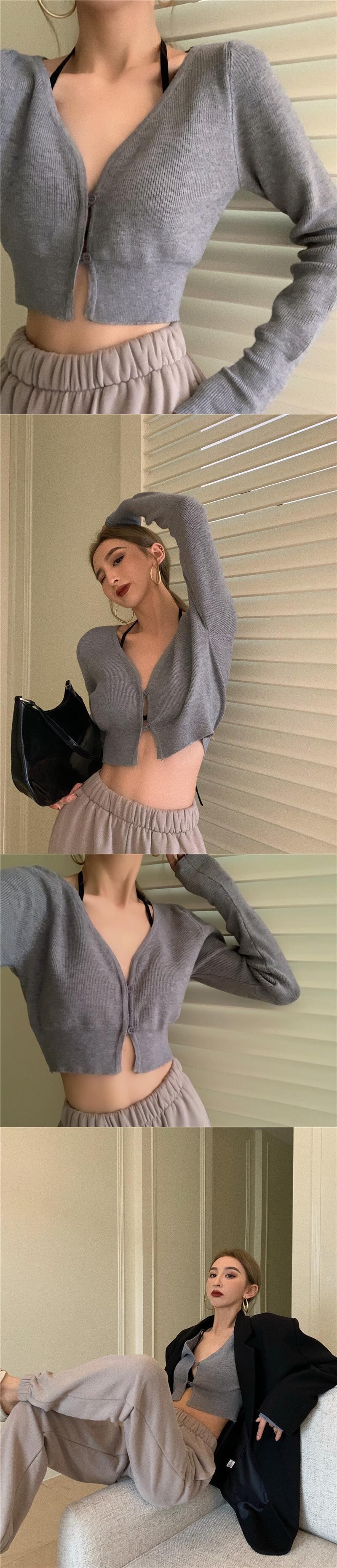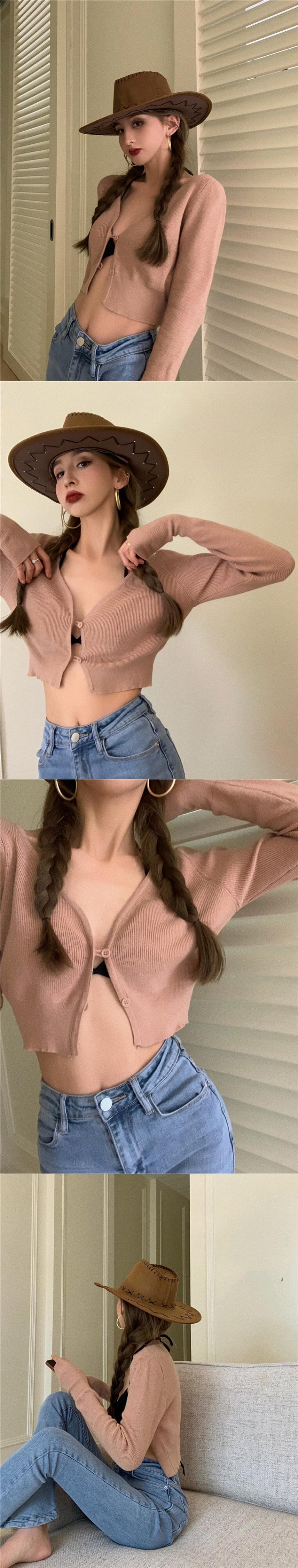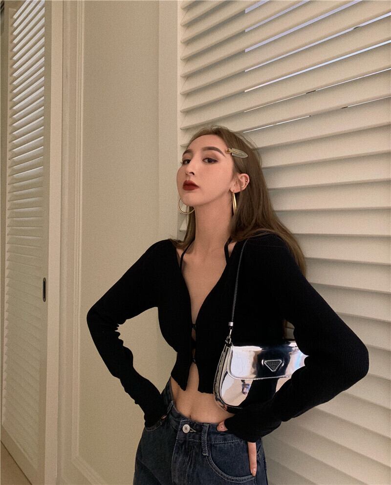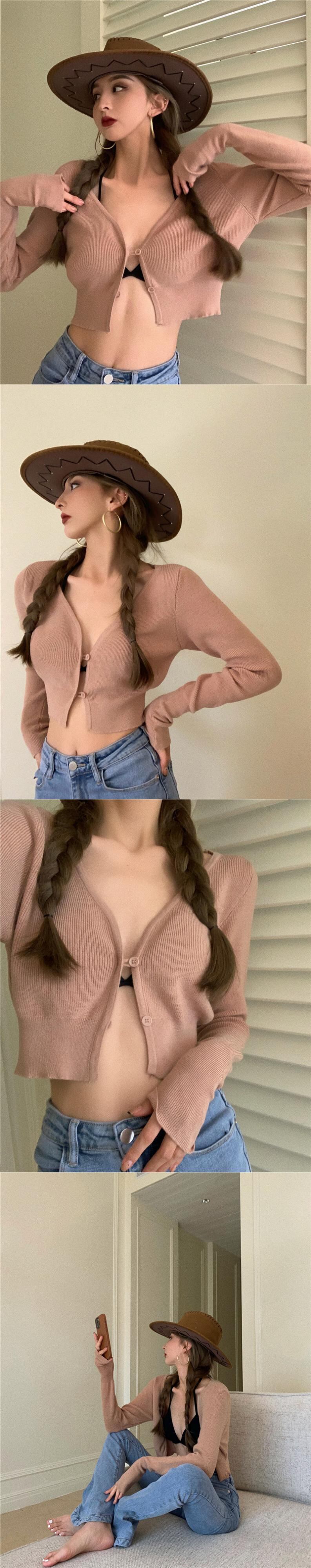 Vネックショートニットカーディガンレディースオータムスリムトップス ロング 秋物 ガールズファッション37267664821