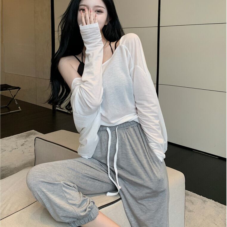 オータムホルター薄手トップス ハイウェストレギンス カジュアルパンツ ストリート 秋物 ガールズファッション21917161488