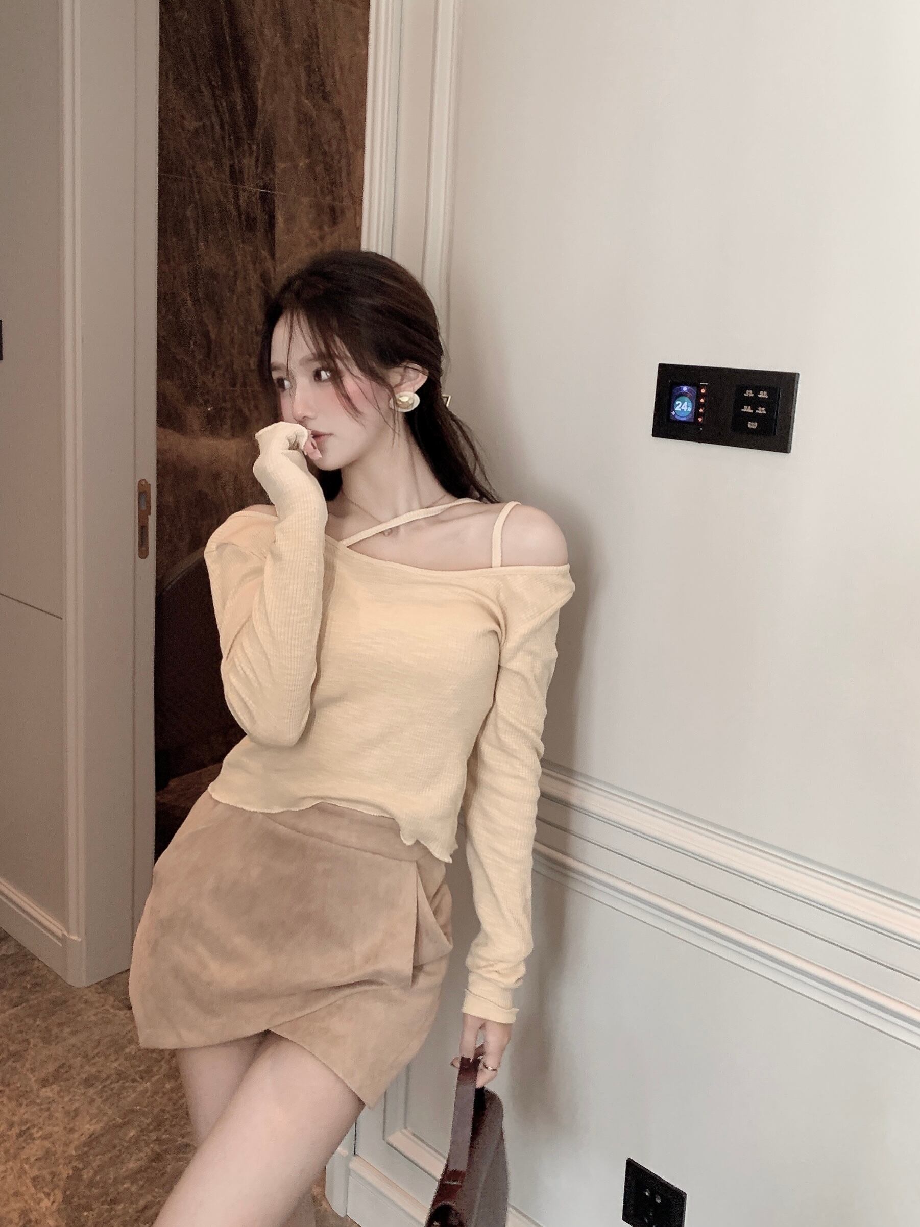 薄手ニットセーター オータムスタイルスリムショートブラウス 秋物 ピュア ガールズファッション28334333524