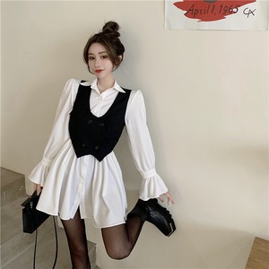 色:白いシャツスカート,黒のスーツのベスト,写真ツーピース