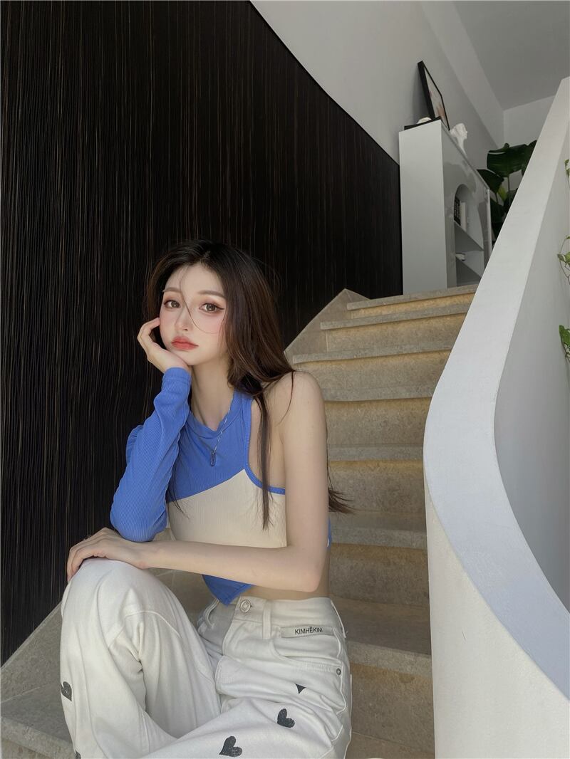 カラーショートトップス オータム薄手シャツ ロング 秋物 ピュア ステッチ ガールズファッション76916616072