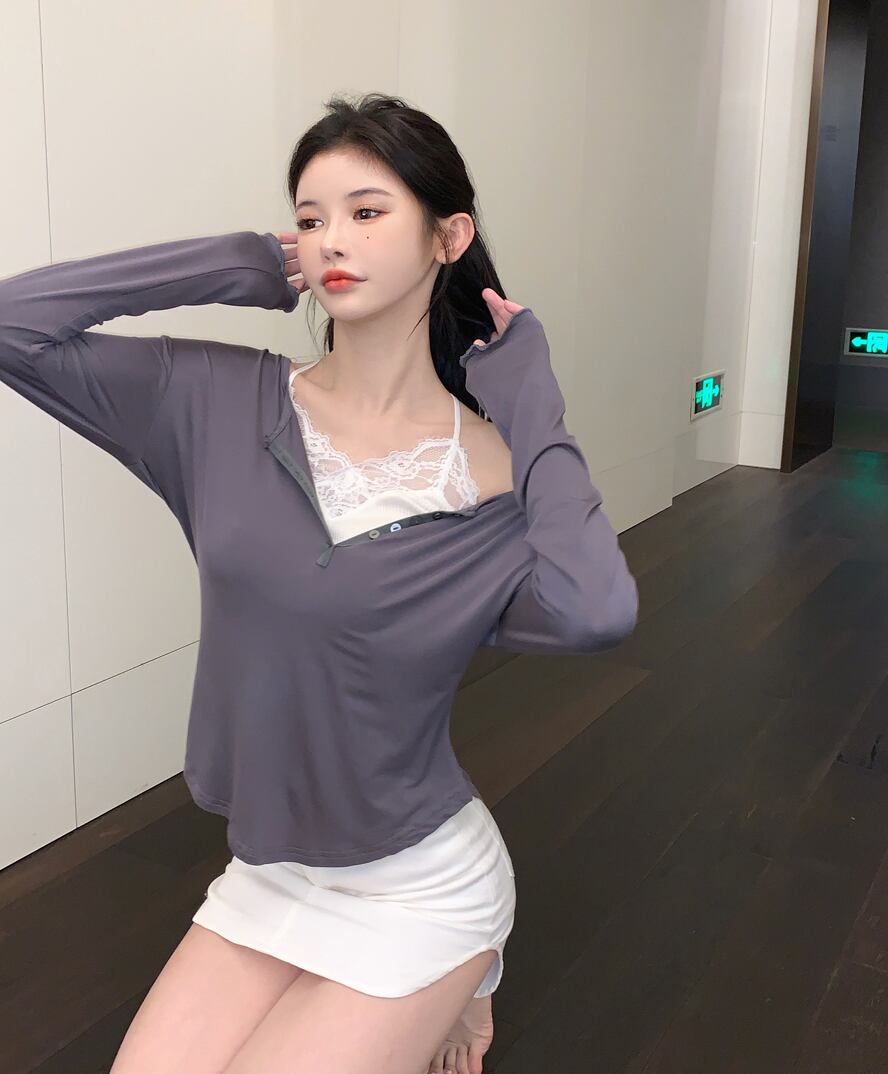 薄手Tシャツ シャツ オータムカラートップス スリム ロング 秋物 ピュア ガールズファッション65601264326