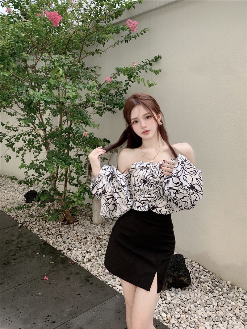 スリーブシャツ オータムスタンダードプリント レトロ 秋物 ガールズファッション57906130475