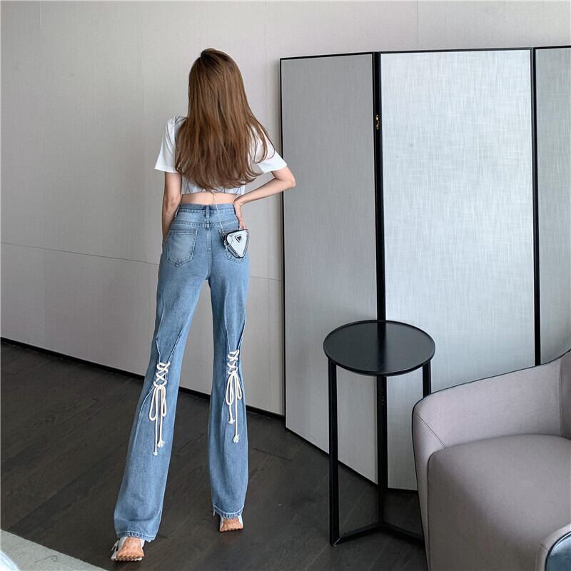 ジーンズ オータムハイウェストカジュアル レッド 秋物 ガールズファッション54378337235