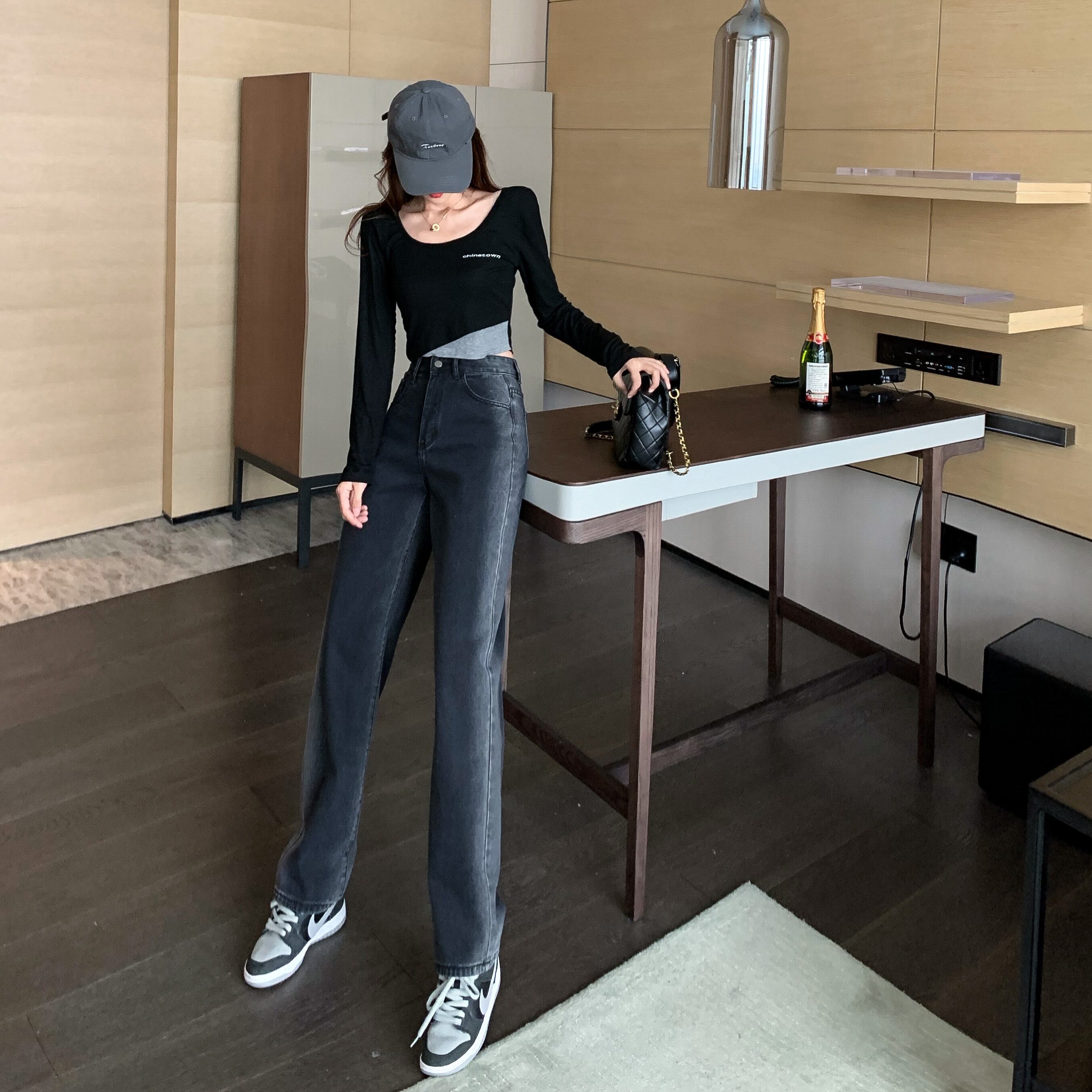 スタンダードハイウェストジーンズ オータムルーズ薄手パンツ レトロ ストリート 秋物 ガールズファッション63873496089