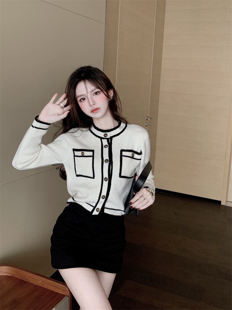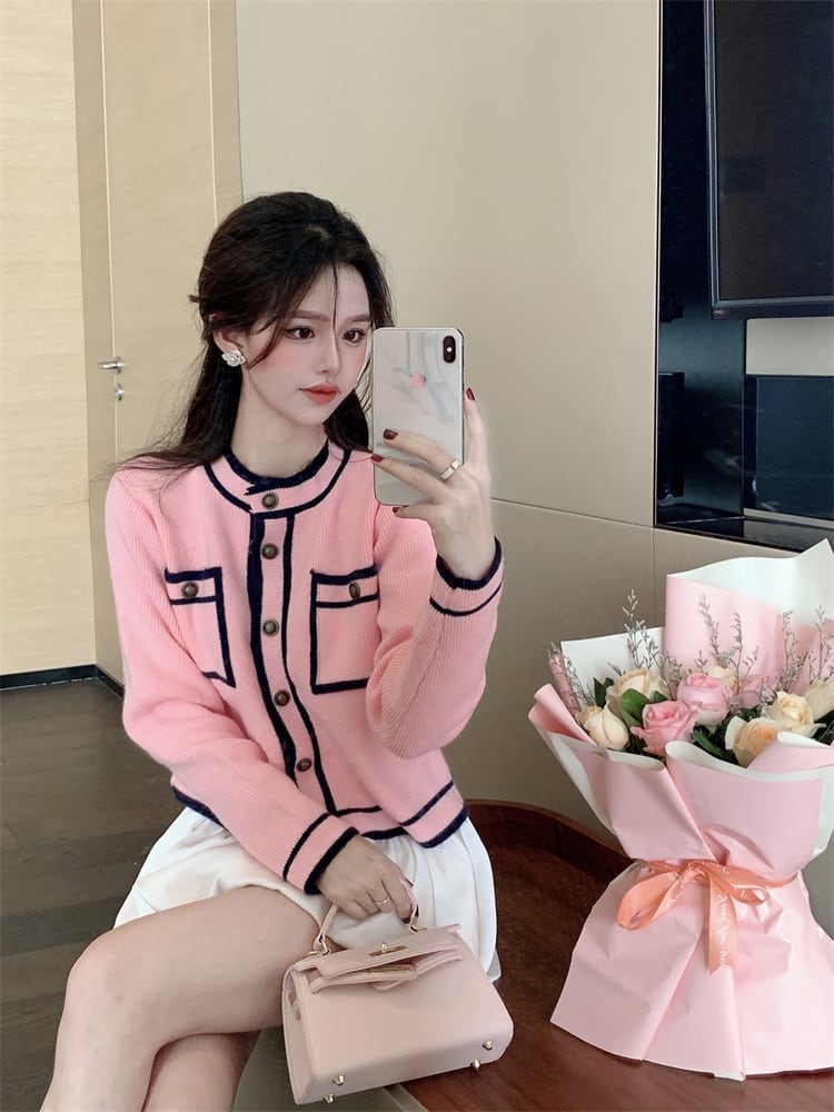 カラーニットカーディガンオータムジャケット ショートトップス ロング 大人ガーリー スウィート キュート カジュアル 秋物 ガールズファッション22915802053