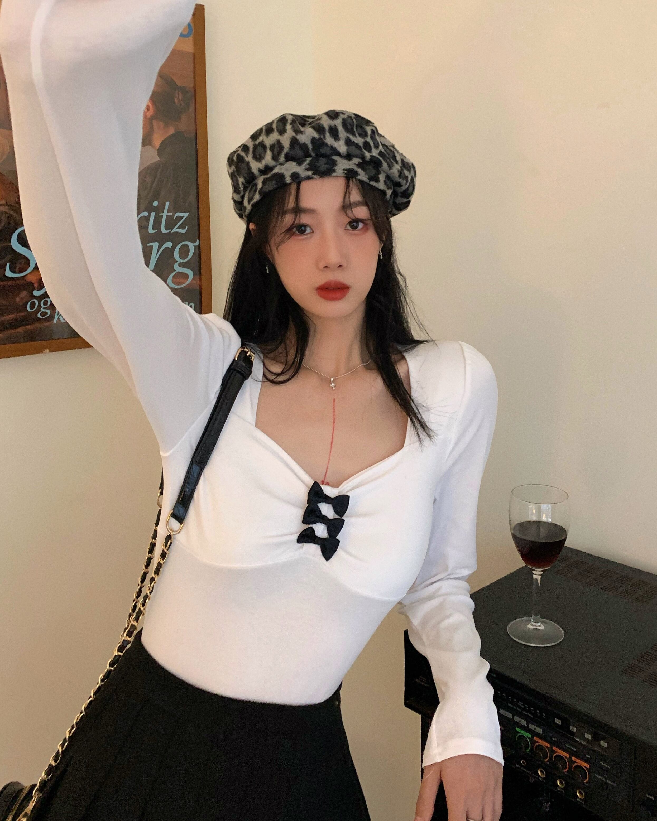 長袖スリーブTシャツ シャツ トップス オータムスリム薄手 ロング 秋物 スクウェア ガールズファッション35955149280