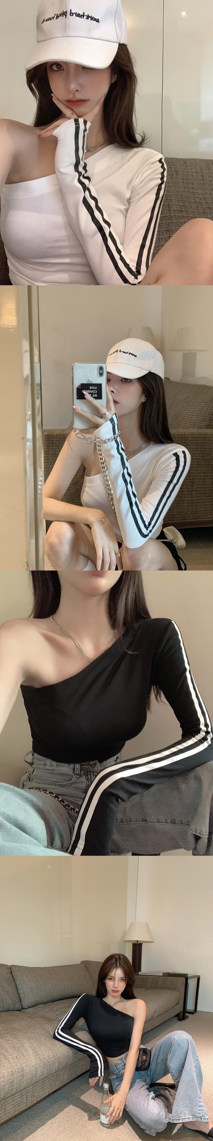 ショートTシャツ サマースタイルカラーストライプトップス ロング 夏物 ガールズファッション19812761945
