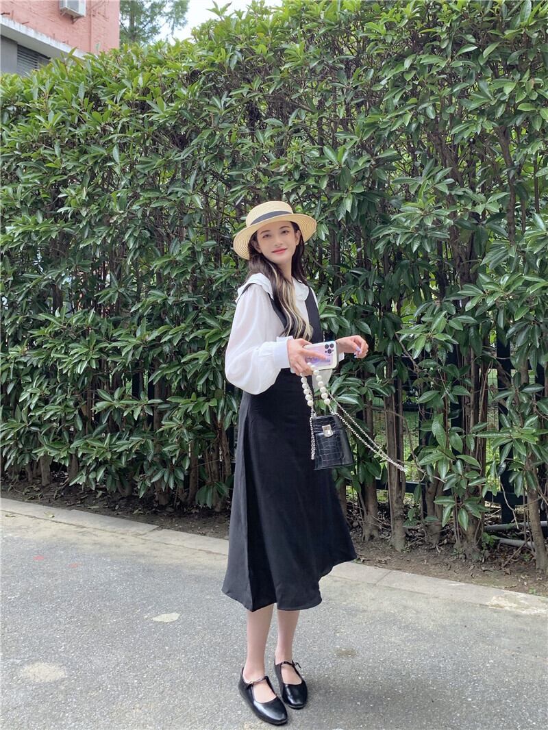 オータムドレス ルーズ薄手ブラックノースリーブスカート 秋物 ガールズファッション14179412088