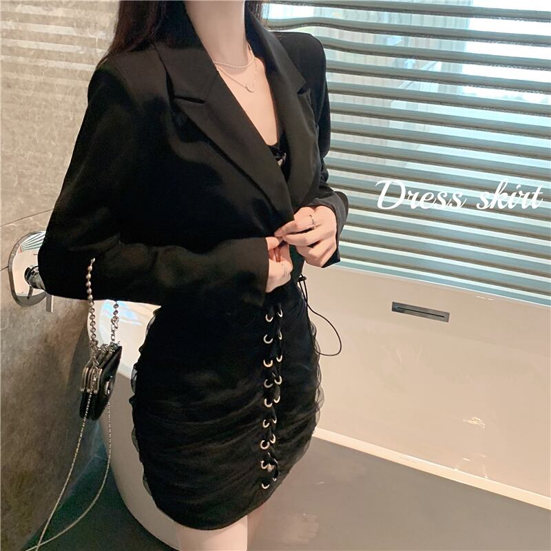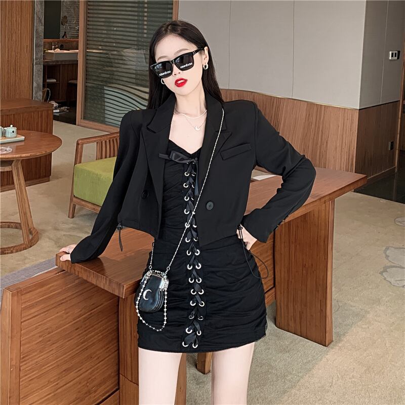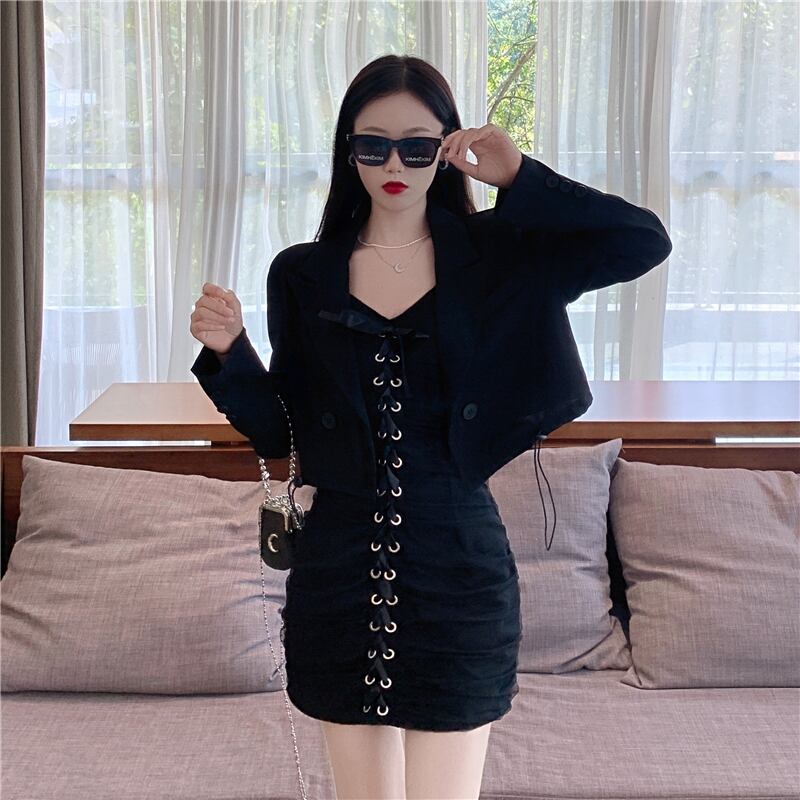 色:黒いジャケット,ブラックサスペンダースカート