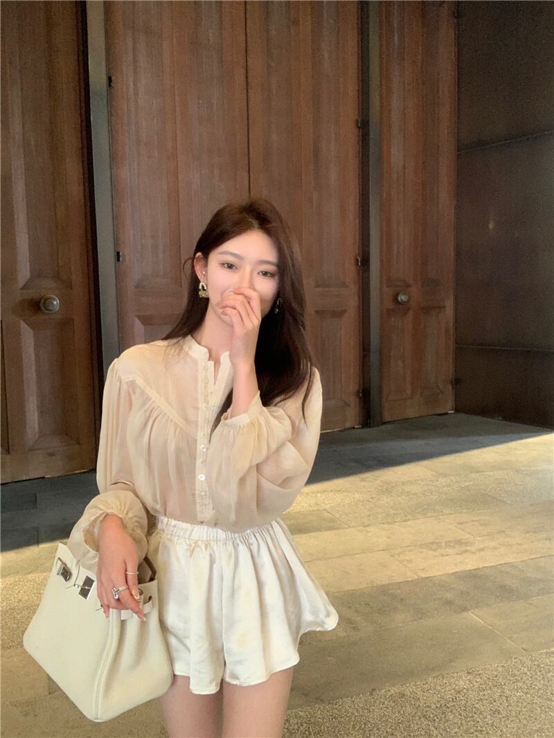シフォンシャツ レディース薄手ハイウェストウェストワイドレッグカジュアルショーツ サマー ストリート 大人ガーリー スウィート キュート 夏物 ブルマー ワイドパンツ ガールズファッション4131556678