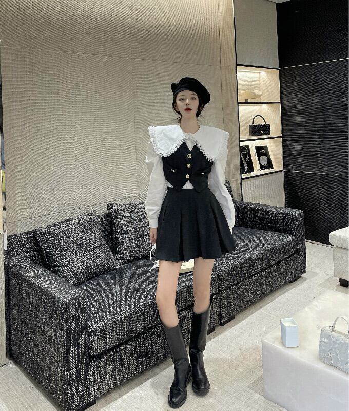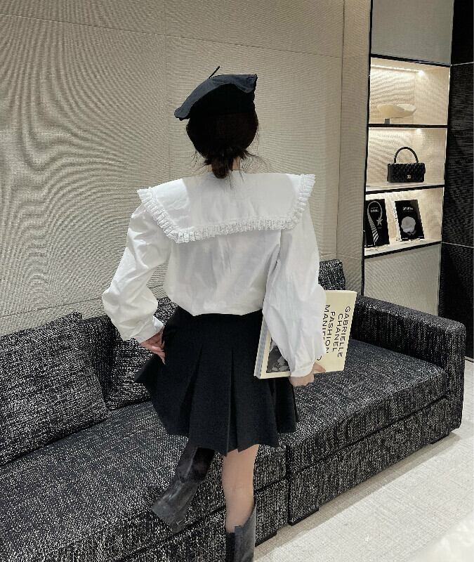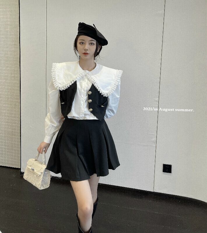 レースシャツ スタンダードスタイルオータムハイウェストプリーツスカート ロング レトロ 秋物 ステッチ ガールズファッション27296796221