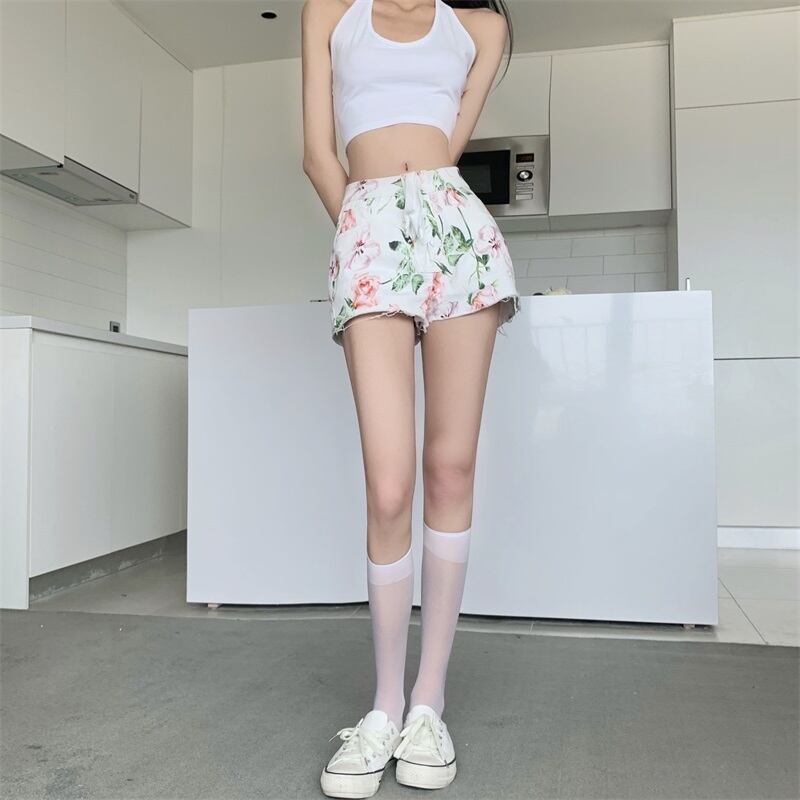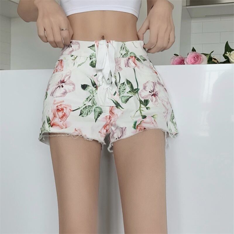 ハイウェストフローラルショーツ サマーパンツ カジュアル ストリート 夏物 ブルマー 花柄 ガールズファッション10337882337