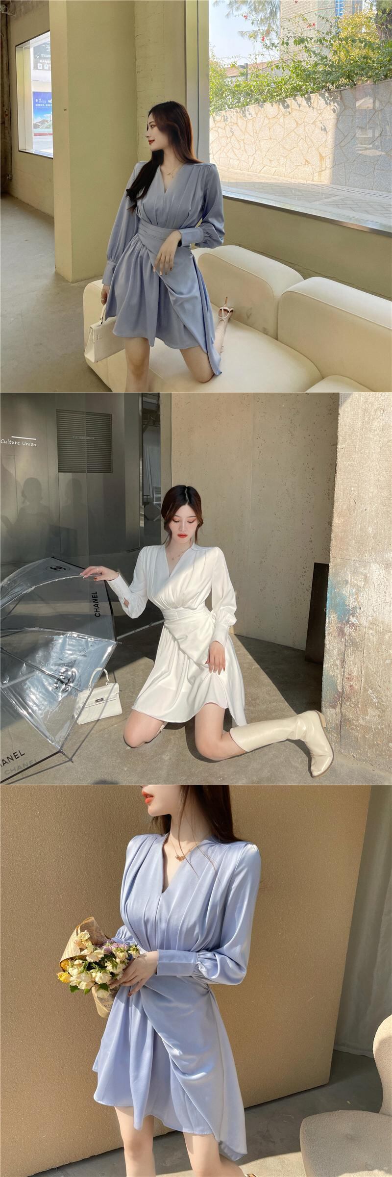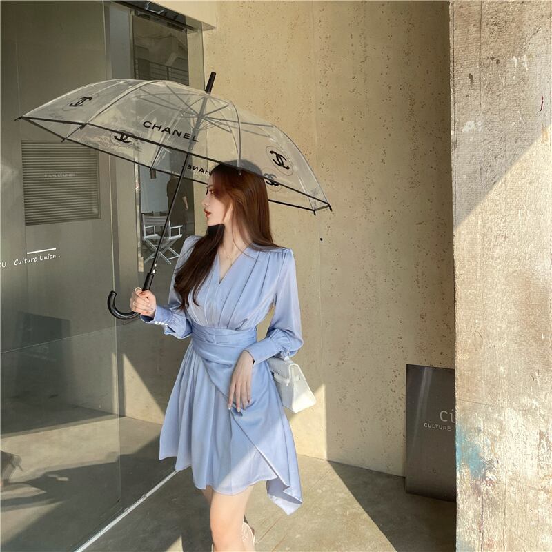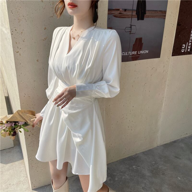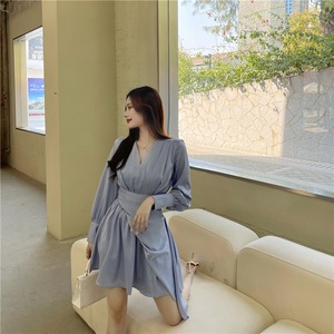 スタンダードVネックウェストドレス オータムスタイルショートスカート 薄手 レトロ 秋物 ガールズファッション40425915187