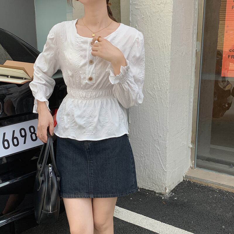 ホワイトシャツ オータムウェストスタイルシフォンプリーツ薄手 秋物 ガールズファッション81026431879