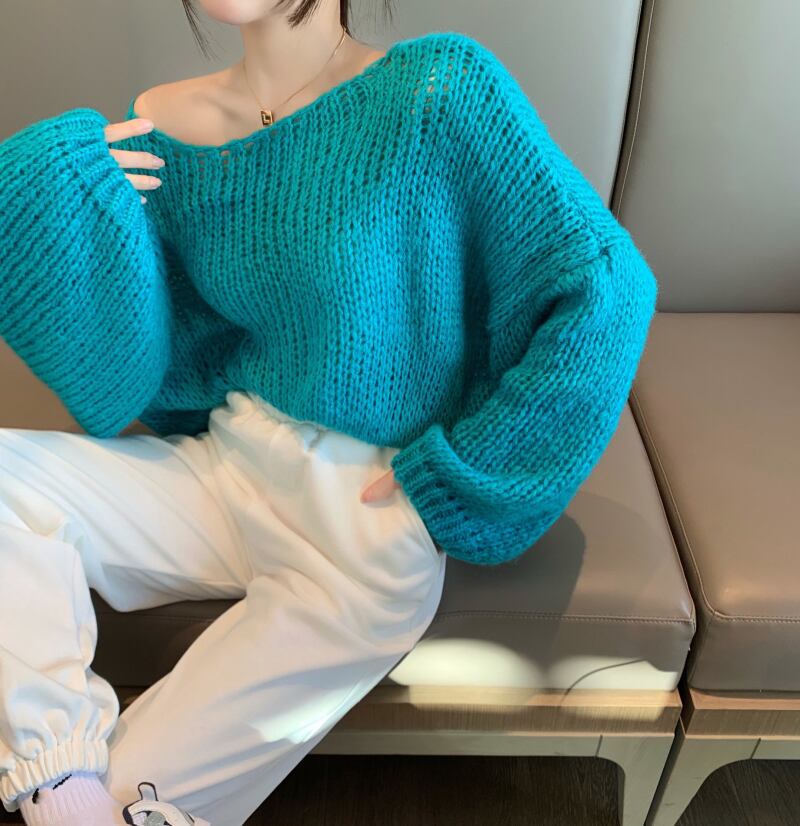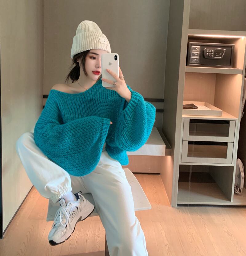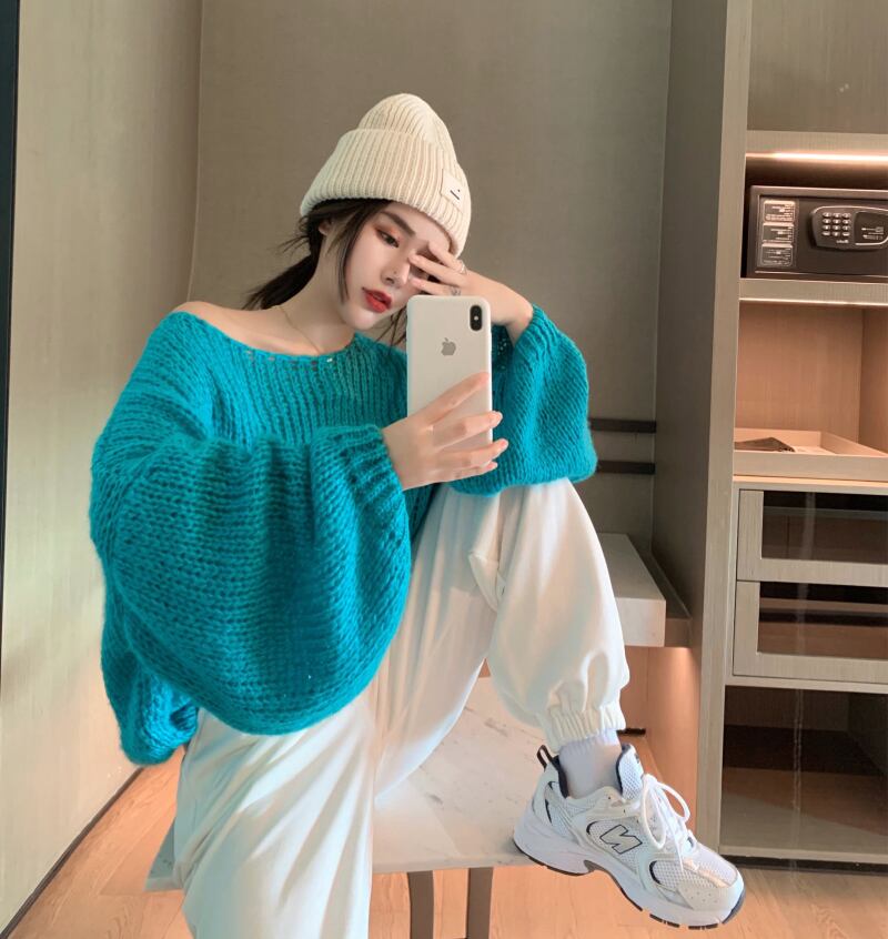 オータムスタンダードルーズニットセーター 薄手カジュアルトップス ロング レトロ 秋物 ガールズファッション11120298533