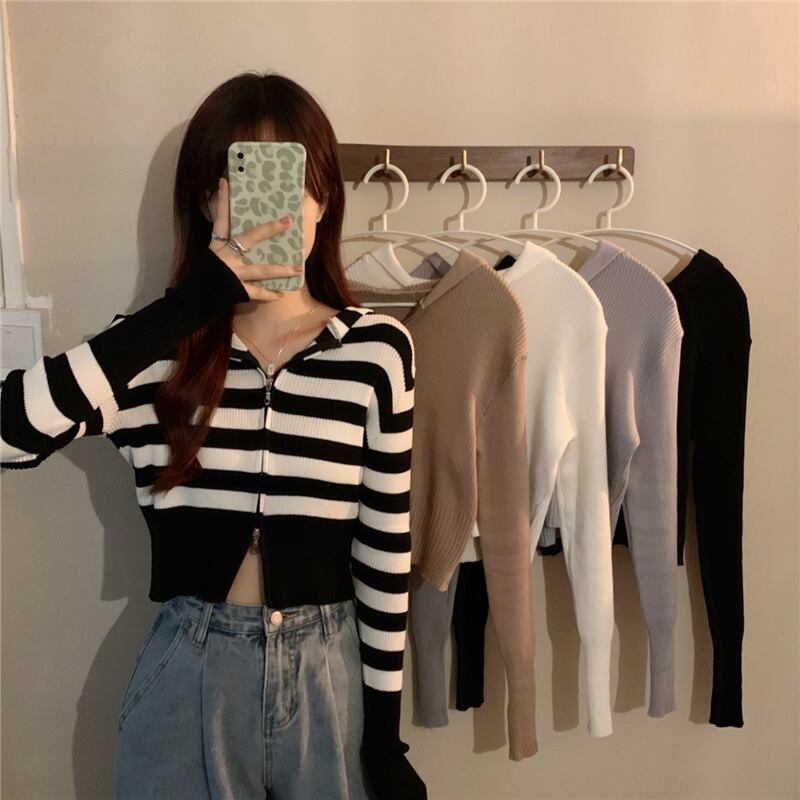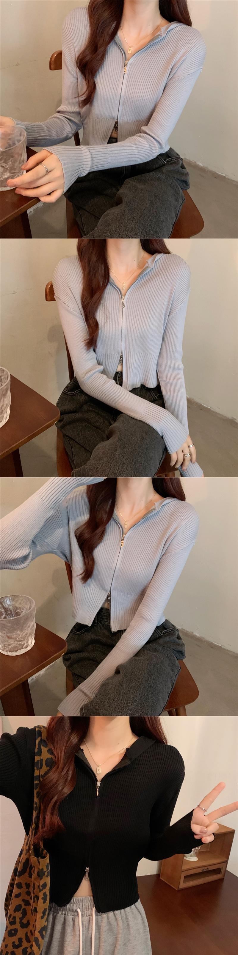オータムダブルジッパーニットカーディガンルーズショートフードジャケット トップス ロング 秋物 ガールズファッション35770350016