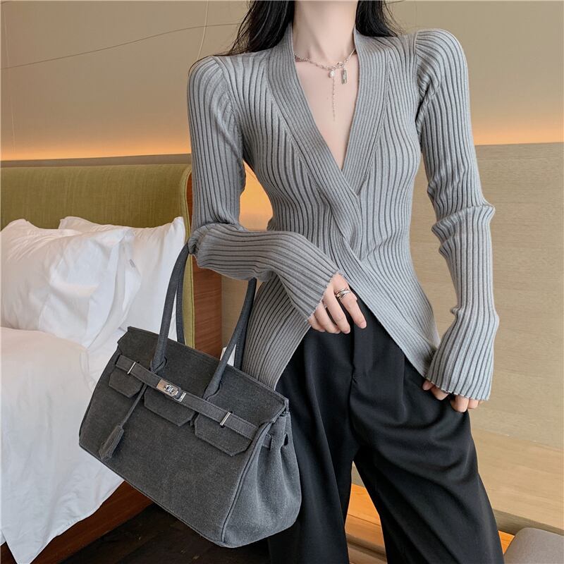 Vネックセーター トップス オータム薄手シャツ ロング 秋物 ガールズファッション60424087658