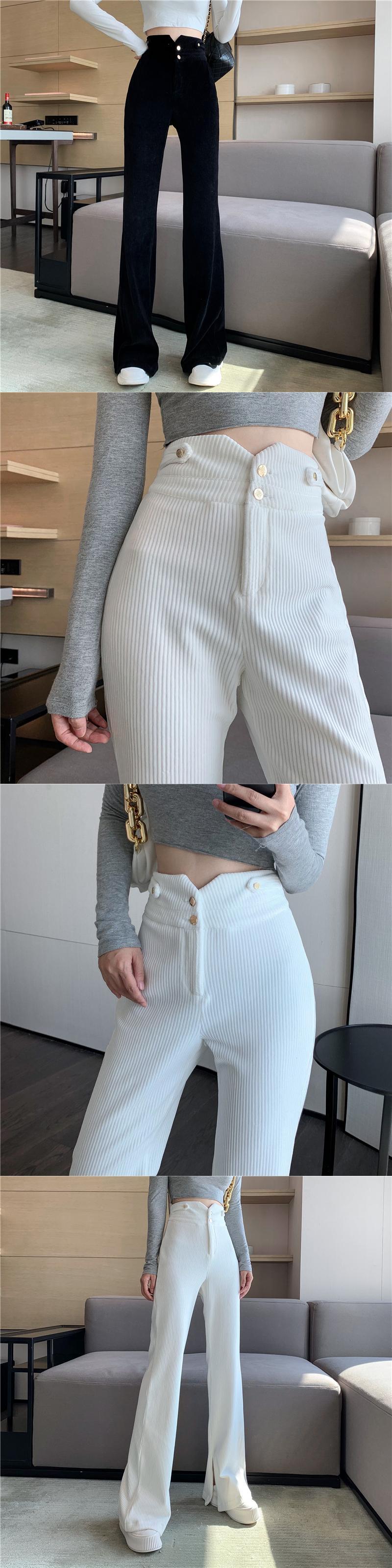 ホワイトカジュアルパンツ オータムハイウェストスリムコーデュロイロング 秋物 ガールズファッション57591809300