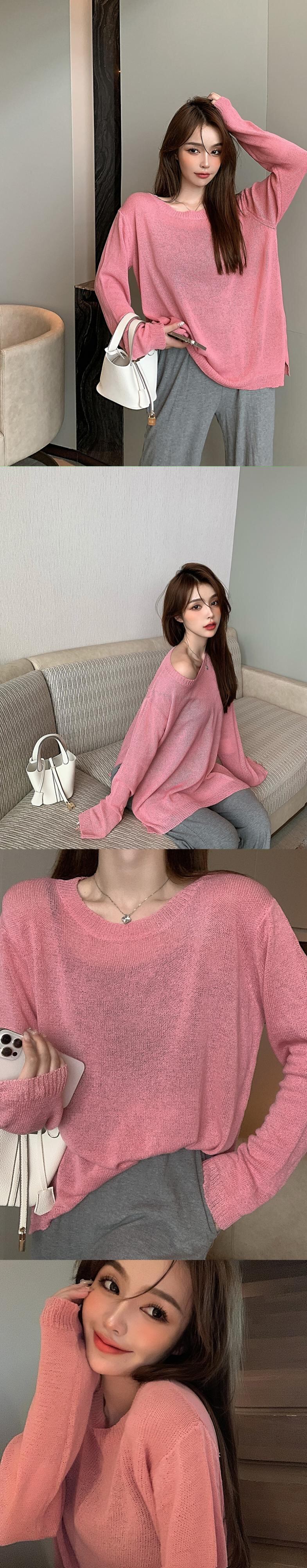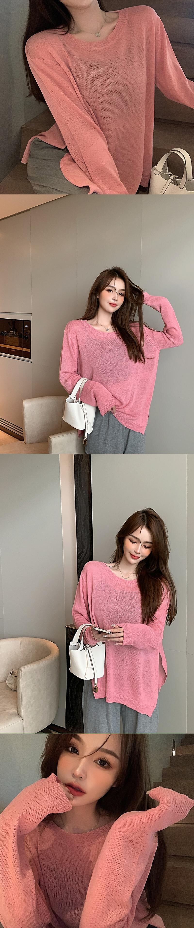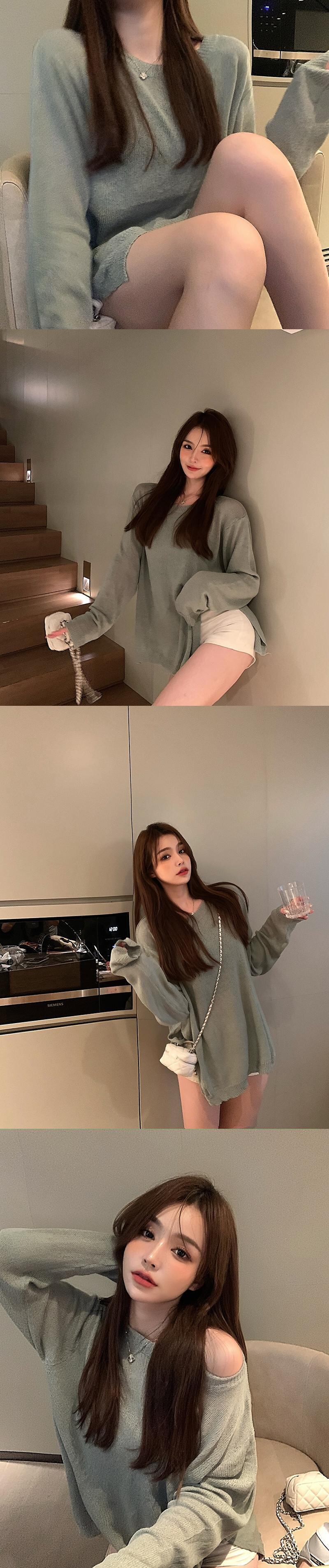 薄手ルーズニットセーター レディースオータムカジュアルプルオーバー シャツ ロング 秋物 ガールズファッション80412151935