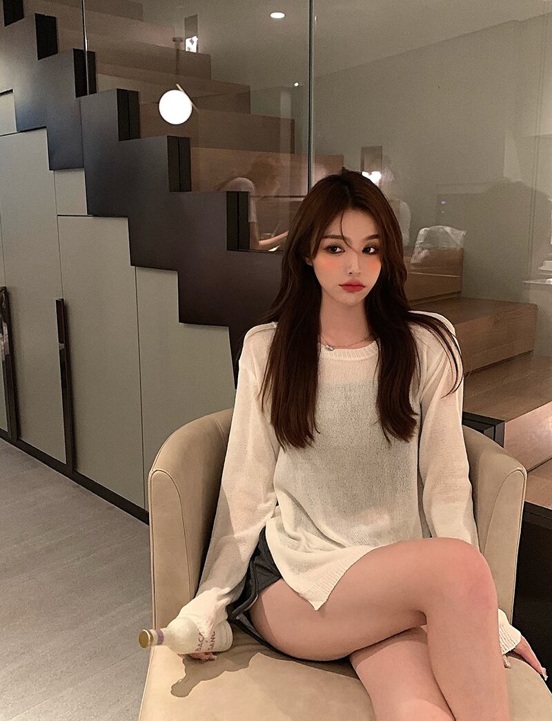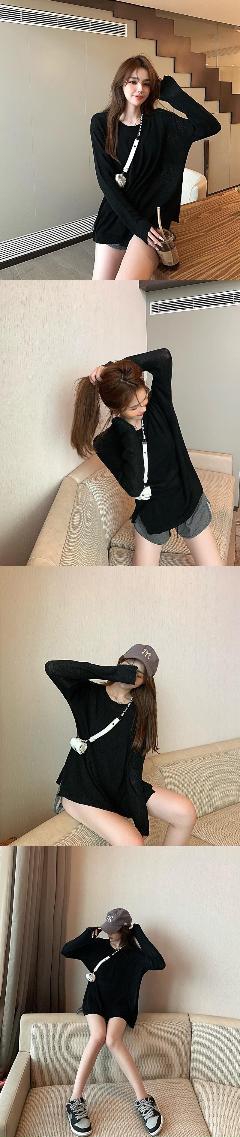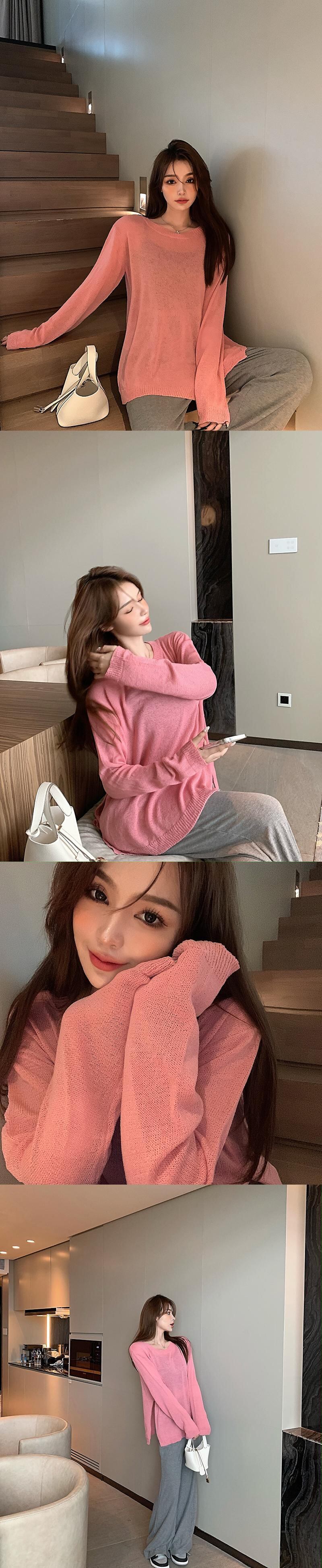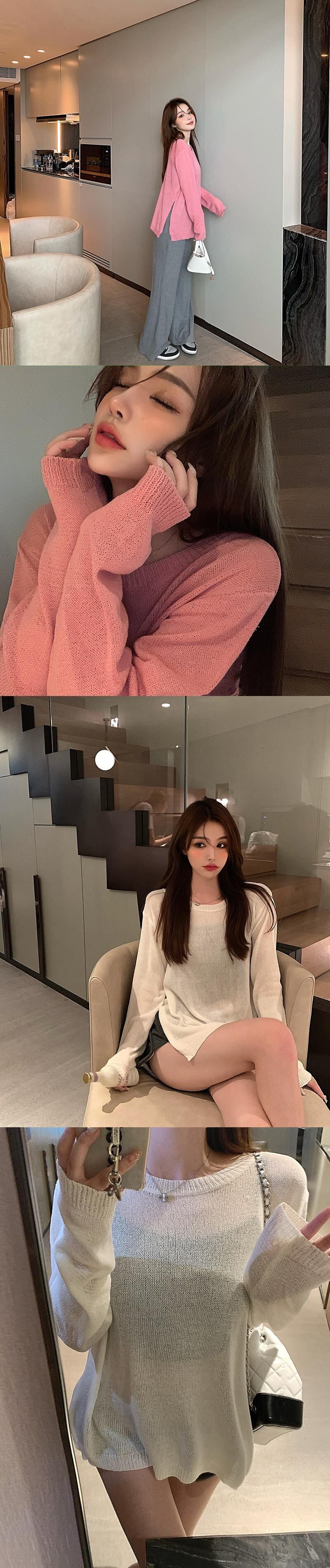 薄手ルーズニットセーター レディースオータムカジュアルプルオーバー シャツ ロング 秋物 ガールズファッション80412151935