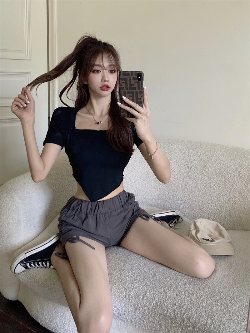 Tシャツ シャツ オータムショートトップス 秋物 スクウェア ガールズファッション7240209842
