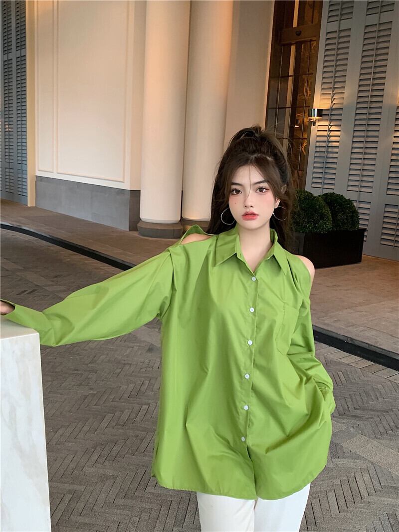 ブラウス オータムストラップレスルーズトップス スタンダードカジュアルシャツ ロング レトロ 秋物 ガールズファッション754235173