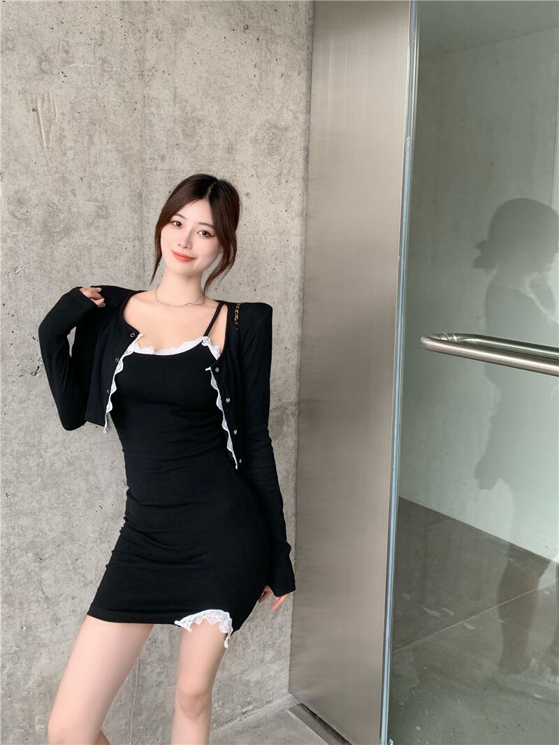レーススカート オータムブラックウェストドレス レディース 秋物 ステッチ ガールズファッション74251309106
