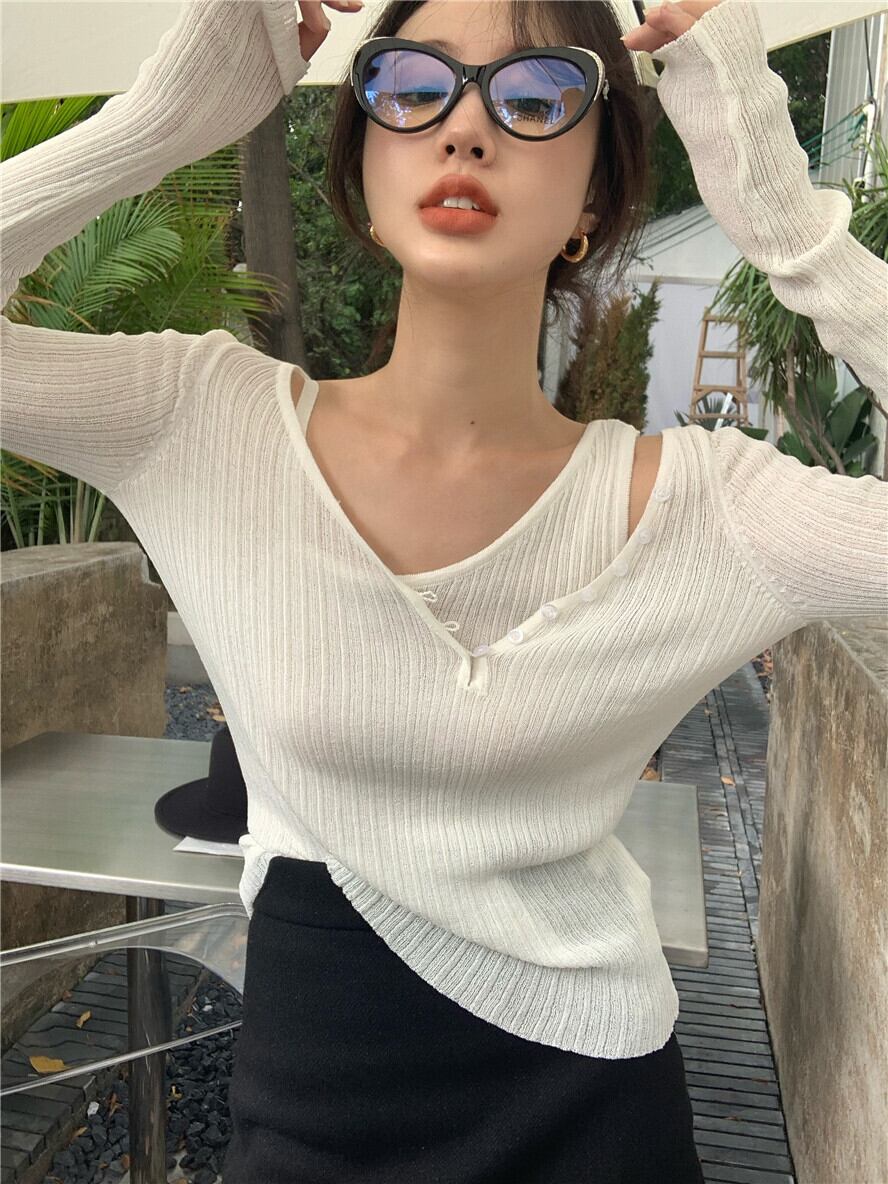 薄手ニットセーター オータムレッドブラウス スリムトップス ロング 秋物 ガールズファッション96740486201