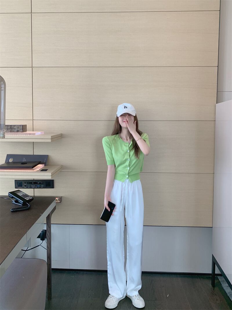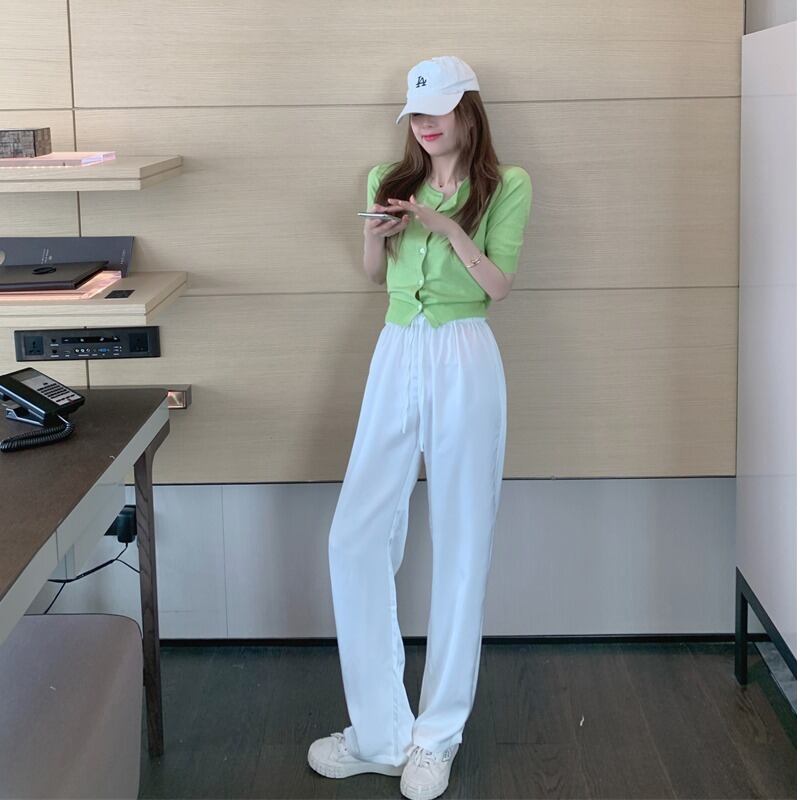 サマー薄手ホワイトカジュアルパンツ サテンルーズ 夏物 ガールズファッション28472955274