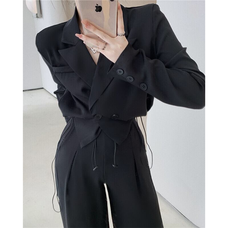 ギャザーブレザー オータムスリムウェストジャケット ショート ロング ストリート 秋物 ガールズファッション64656094545