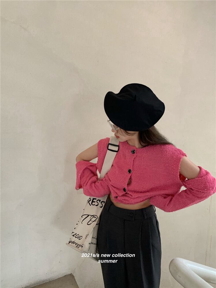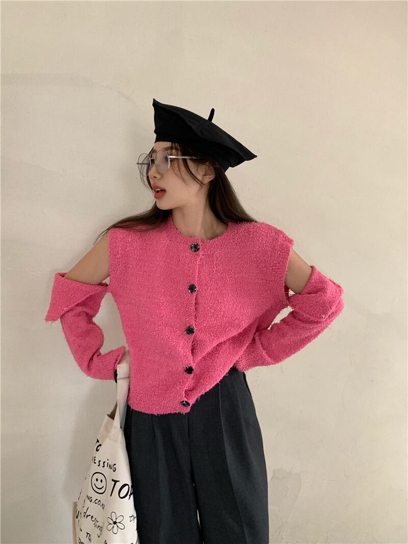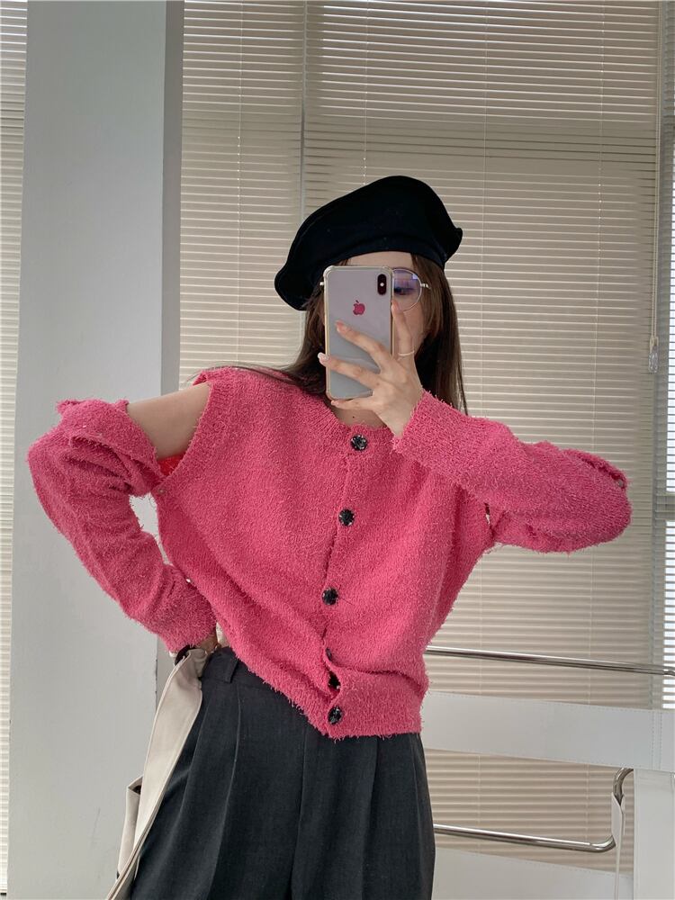 ニットセーター カーディガンオータムショートジャケット ロング ピンク 大人ガーリー スウィート キュート カジュアル 秋物 ピュア ガールズファッション15775153540