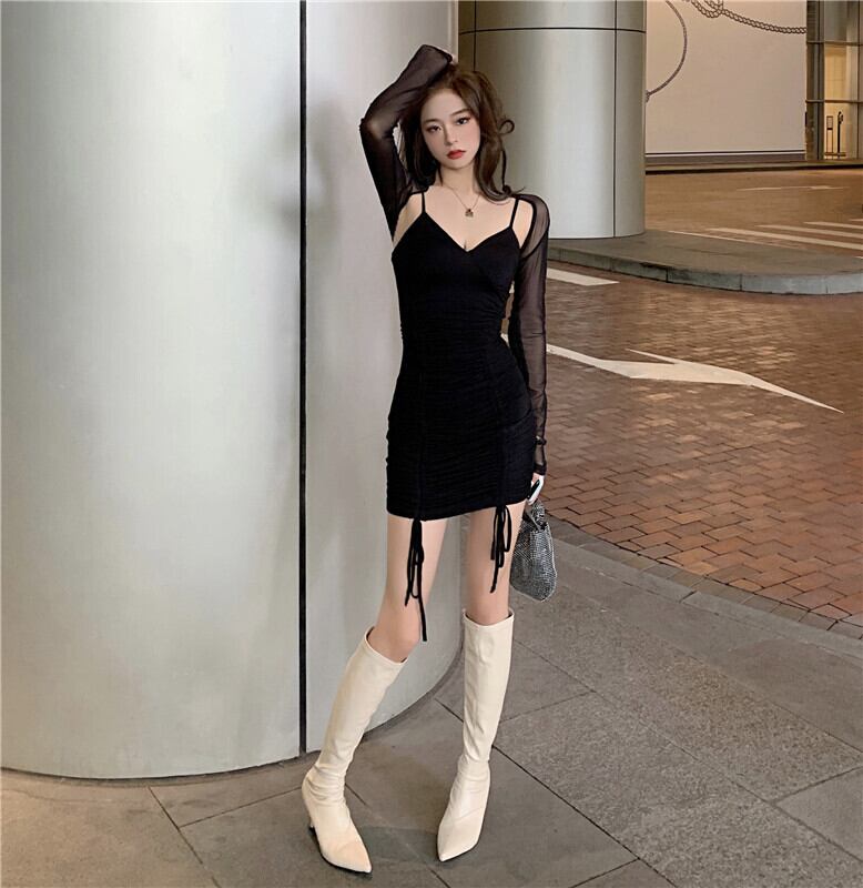 Vネックギャザードレス ショートブラウス オータムスカート ロング ストリート 秋物 ガールズファッション19430342139