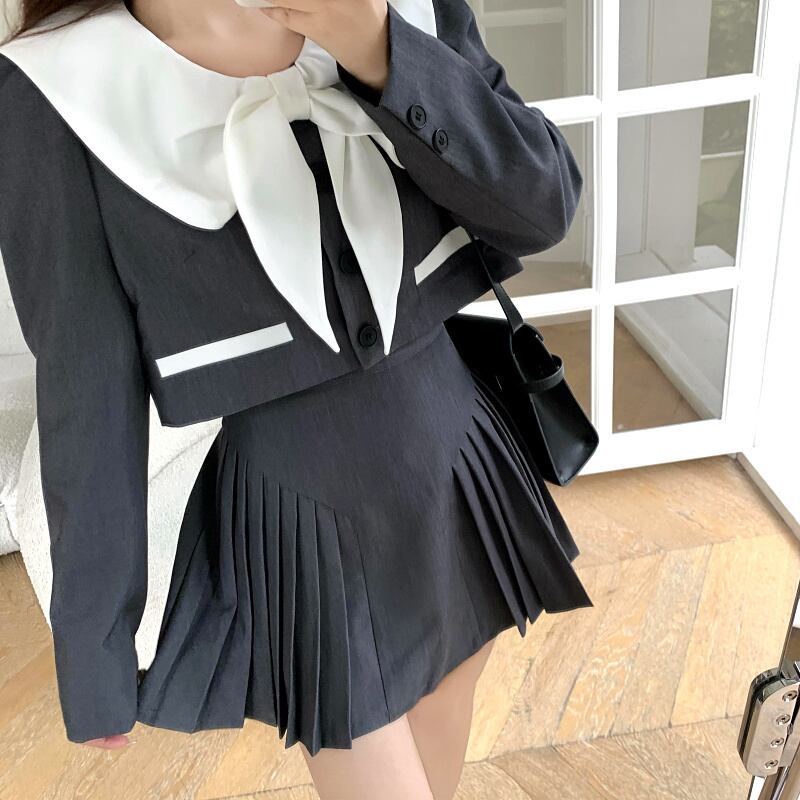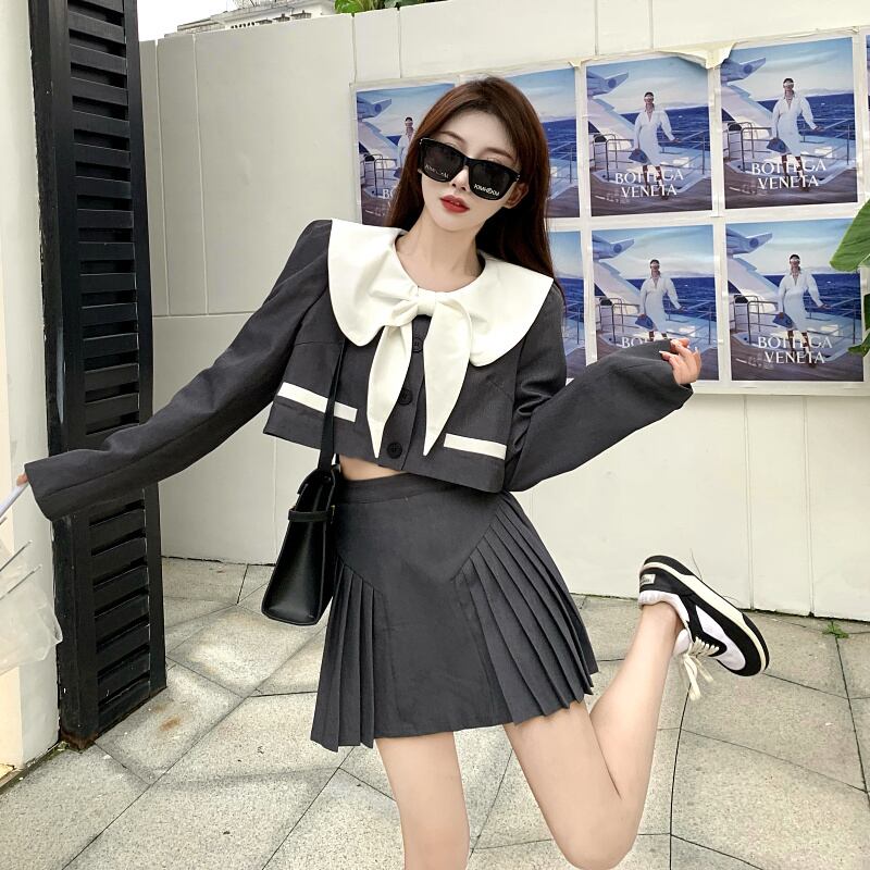 カラーショートブレザー オータムハイウェストプリーツスカート ロング 秋物 ガールズファッション6705161818