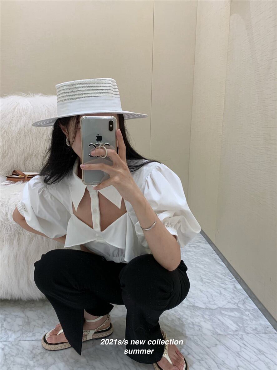 スリーブホワイトシャツ サマージャケット スタンダードショート レトロ 夏物 ガールズファッション95364241038