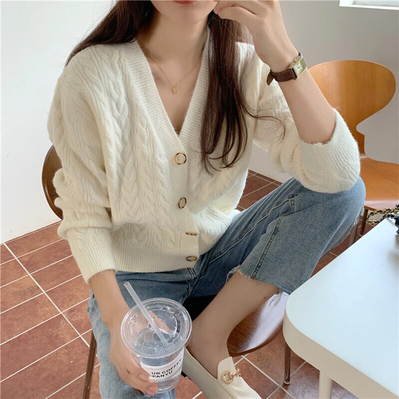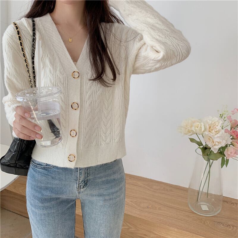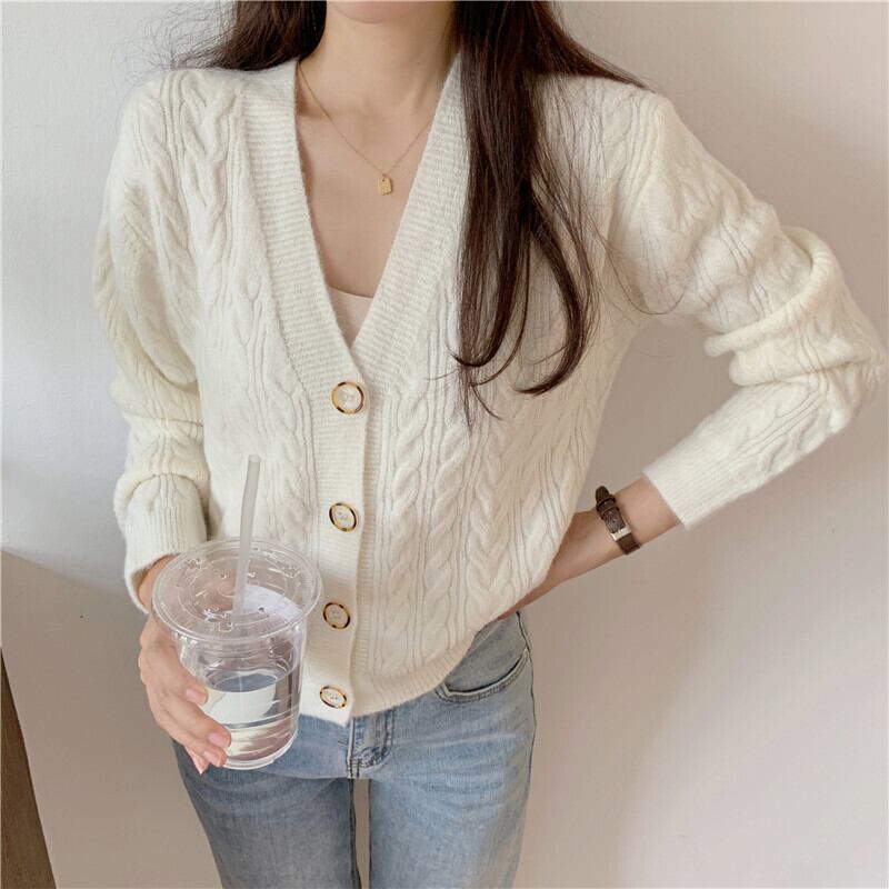 ニットカーディガントップス レディースオータムスタイルVネックルーズホワイトセーター ショートコート ロング 秋物 ガールズファッション86196621145