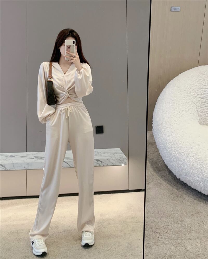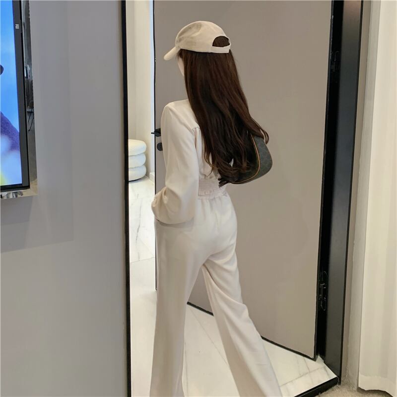 クロップドショートルーズトップス ハイウェストウェストパンツ オータム ストリート 秋物 ガールズファッション9865871063