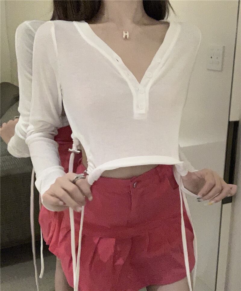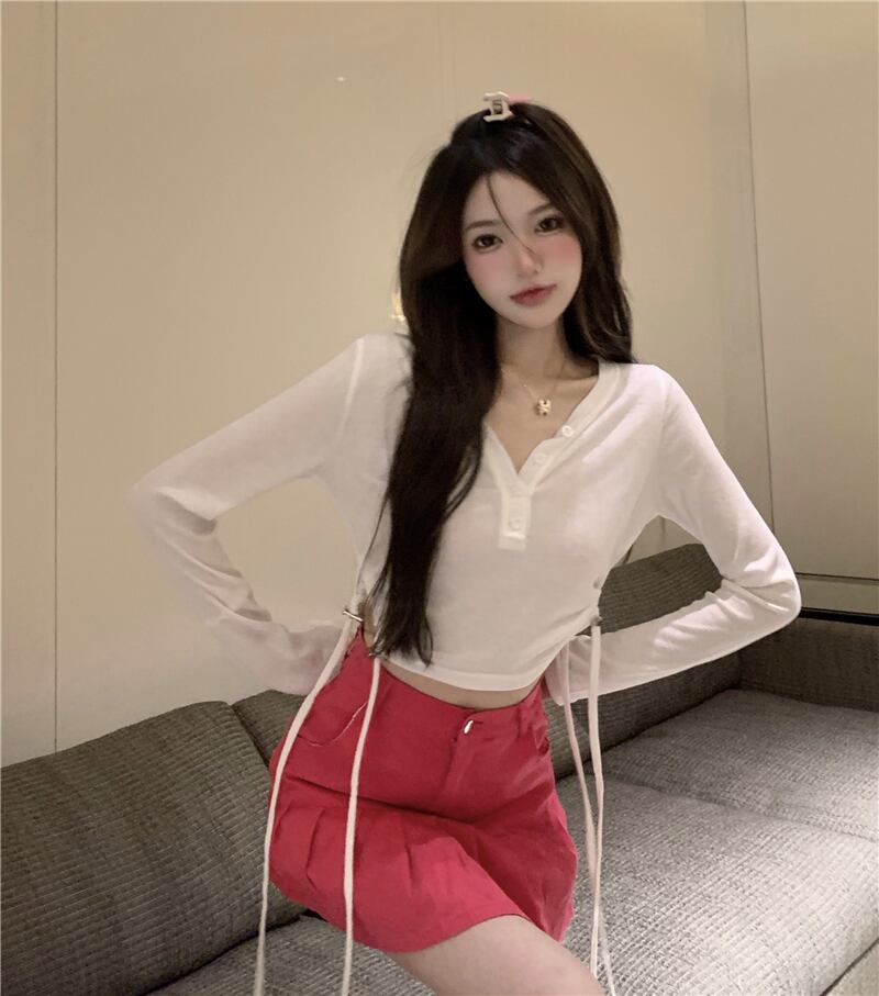 トップス レディースオータム薄手ショートTシャツ ロング 秋物 ピュア ガールズファッション30014193952