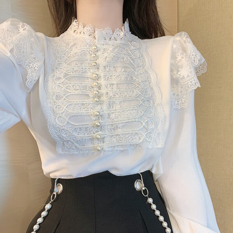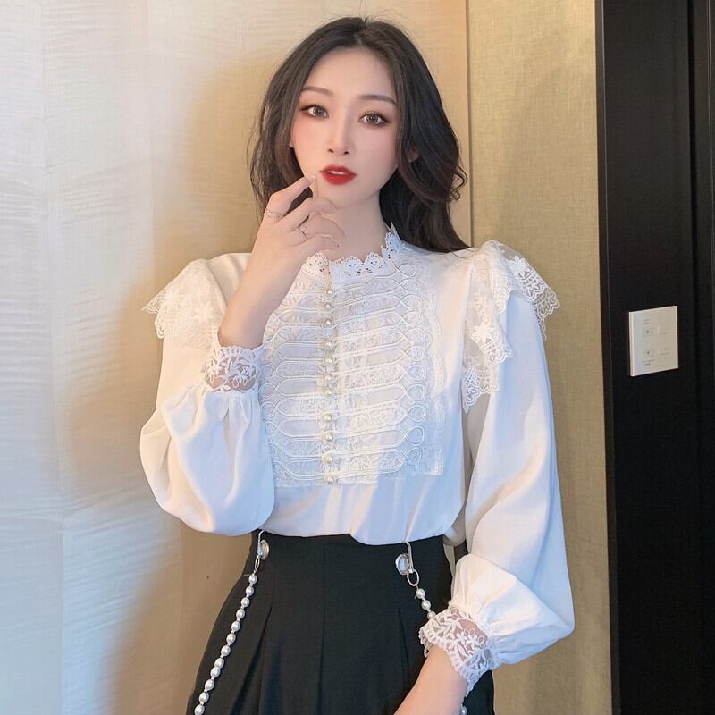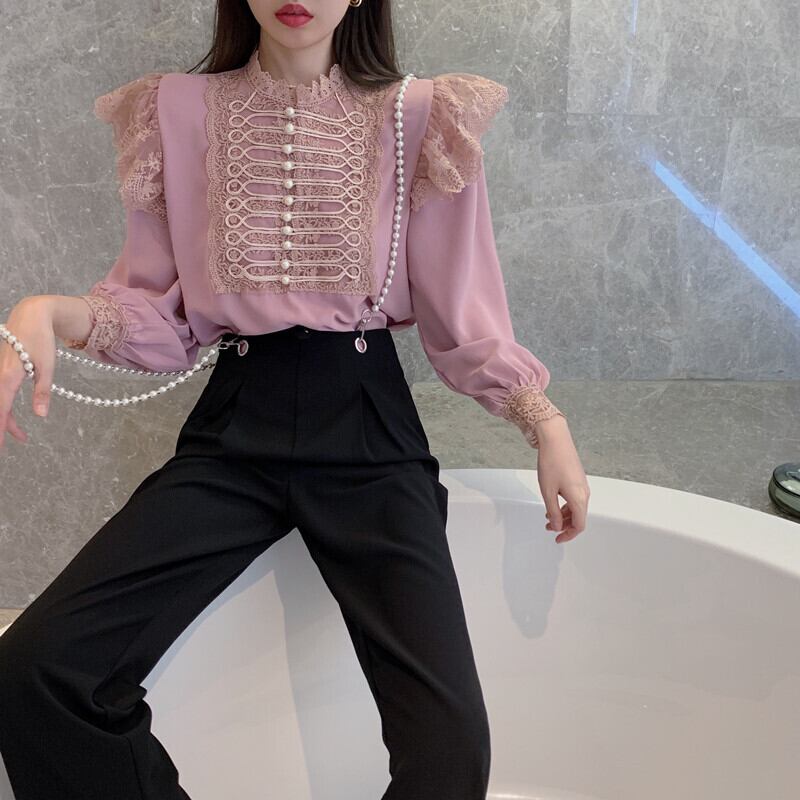 スタイルスタンダードオータムレースシャツ トップス パールパンツ カジュアル ロング レトロ 秋物 真珠 ガールズファッション44628868930