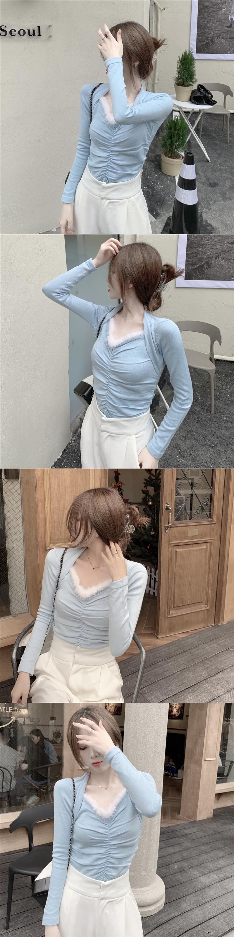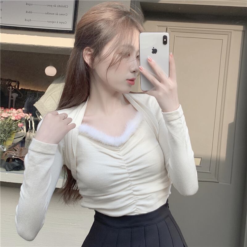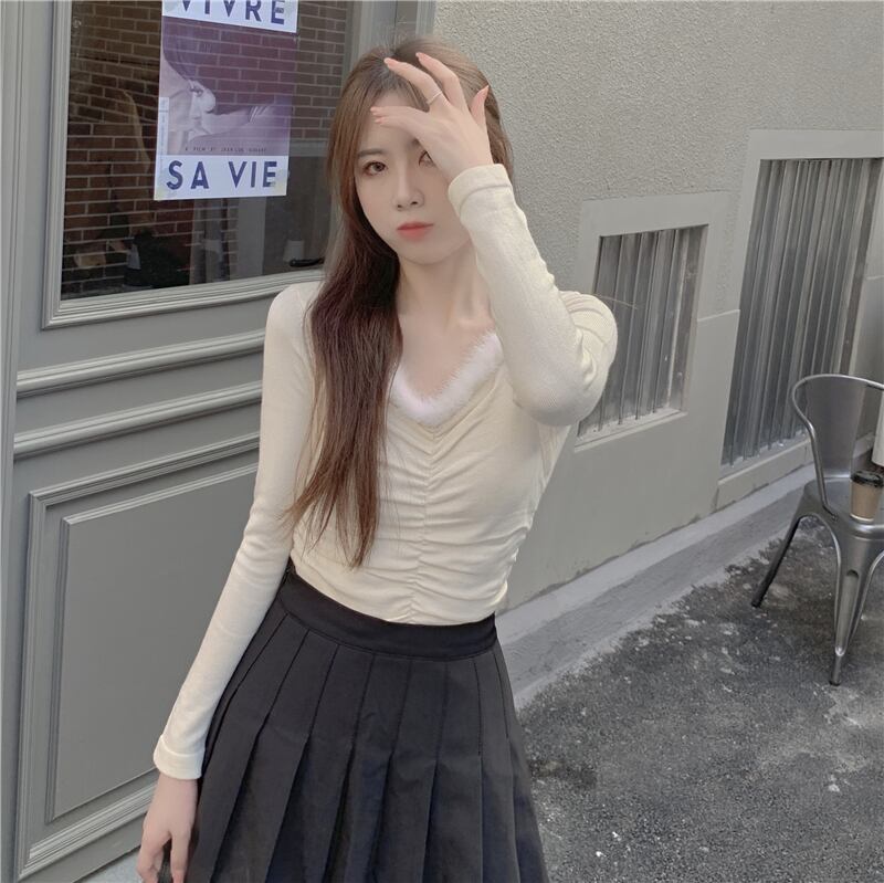 プリーツニットシャツ オータムスリムTシャツ ロング 秋物 ピュア ガールズファッション93922634199