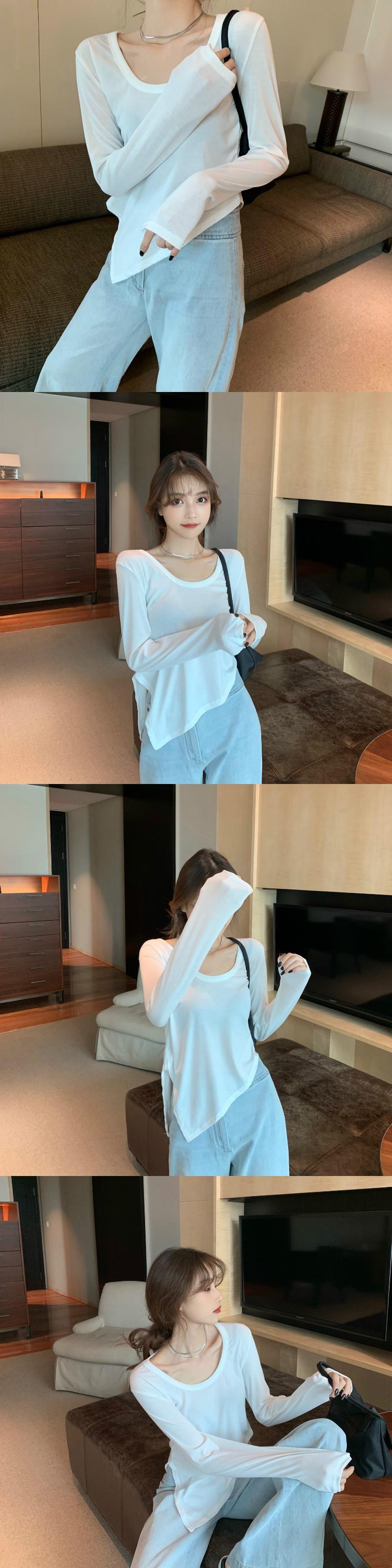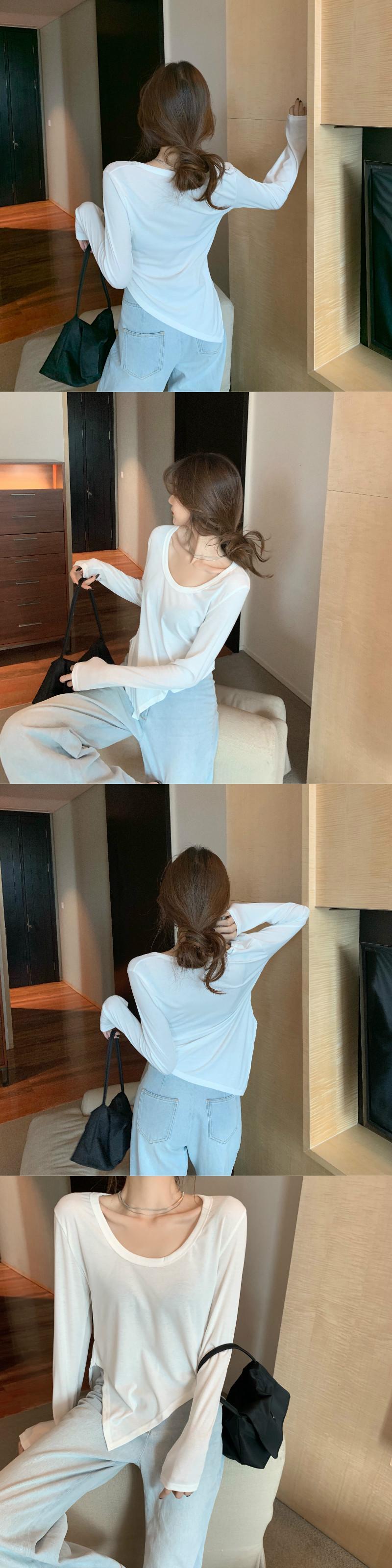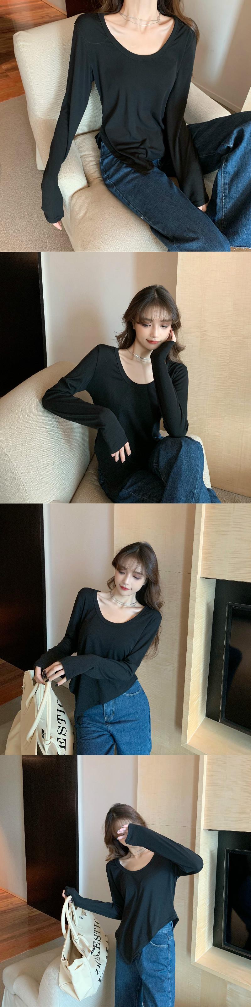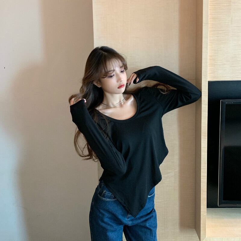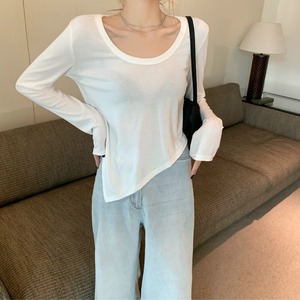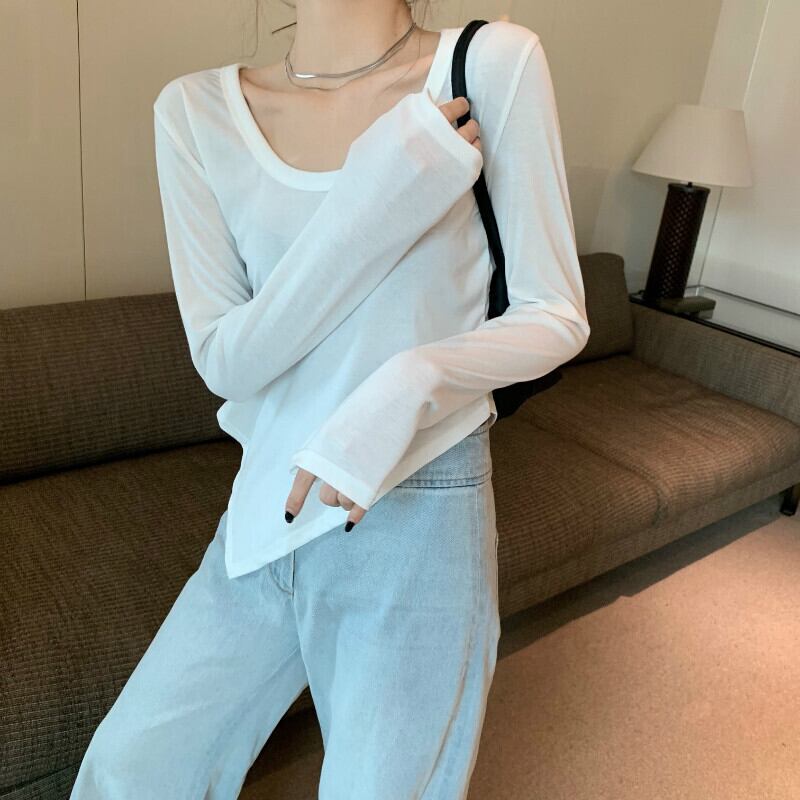 Tシャツ シャツ オータムトップス スタンダードラウンドネックルーズソリッド カラー ロング レトロ 秋物 Oネック ソリッドカラー ガールズファッション25436467111