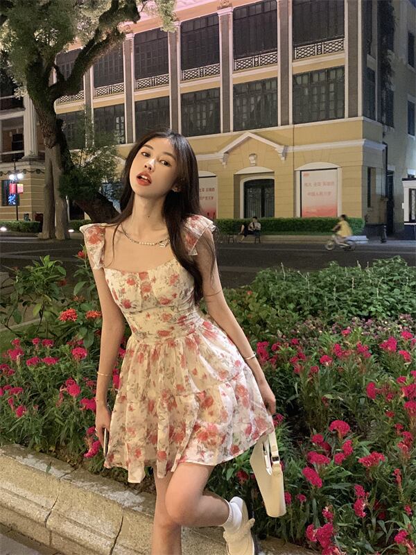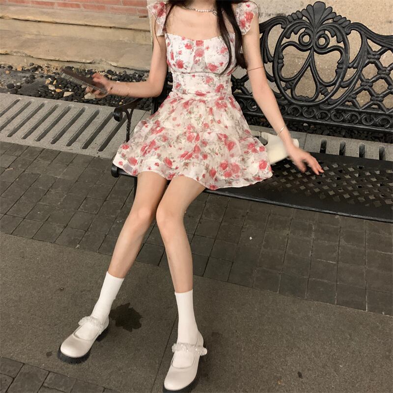 フローラルドレス サマーシフォンスカート ウェストAラインショート ストリート 大人ガーリー スウィート キュート カジュアル 夏物 花柄 ガールズファッション43960142588