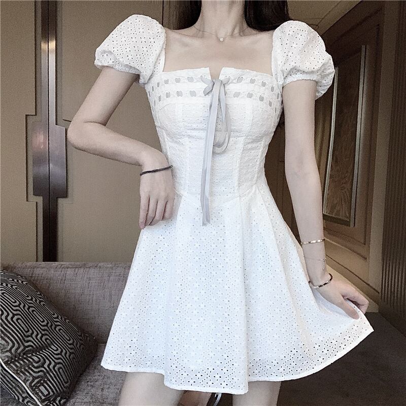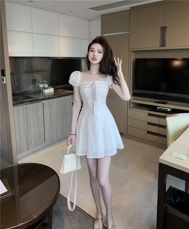 レースハイウェストウェストAラインスカート サマードレス 夏物 スクウェア ガールズファッション87884744404