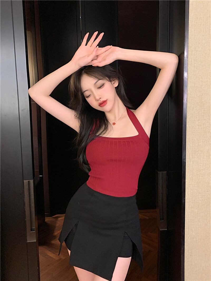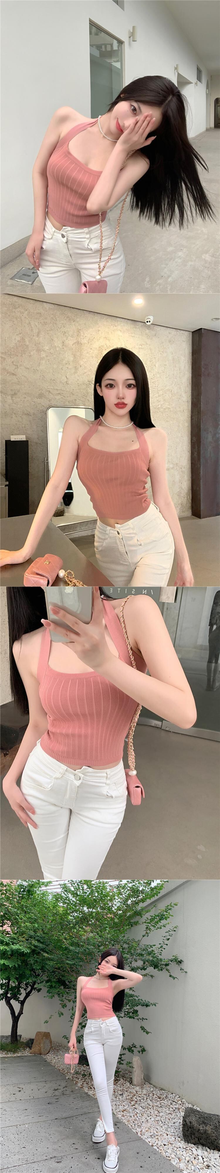 ホルターニットトップス サマー薄手ショート 夏物 ガールズファッション39620392625